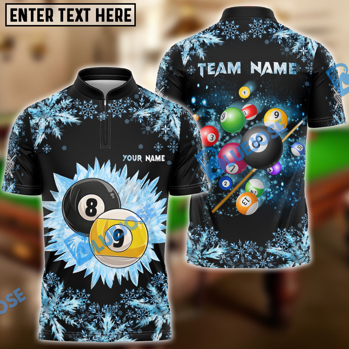 BlueJose Billiards Big Ice 8 Ball & 9 Ball Personalized Shirt