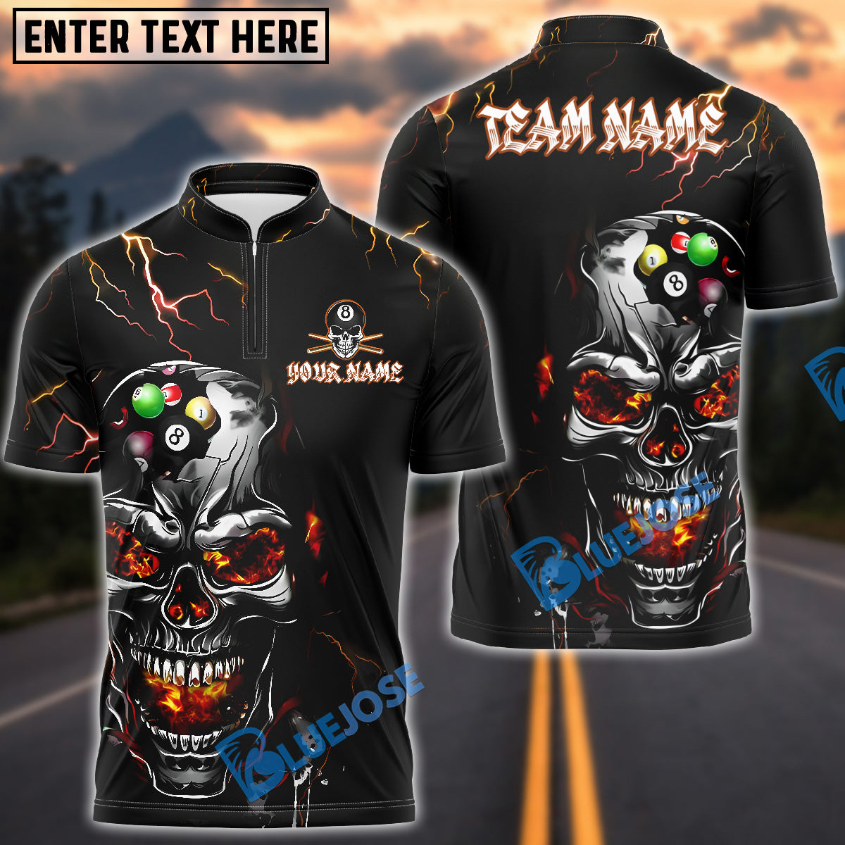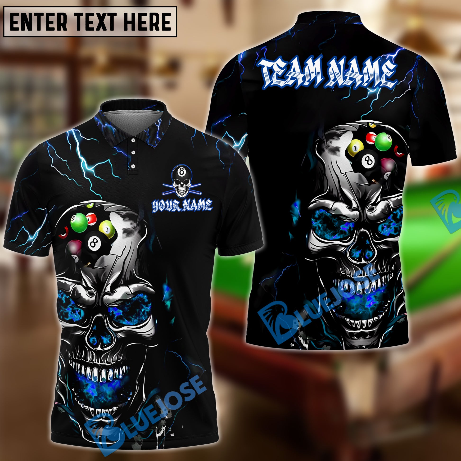 BlueJose Billiards Thunder Lightning Skull Personalized Name Shirt (4 Colors)