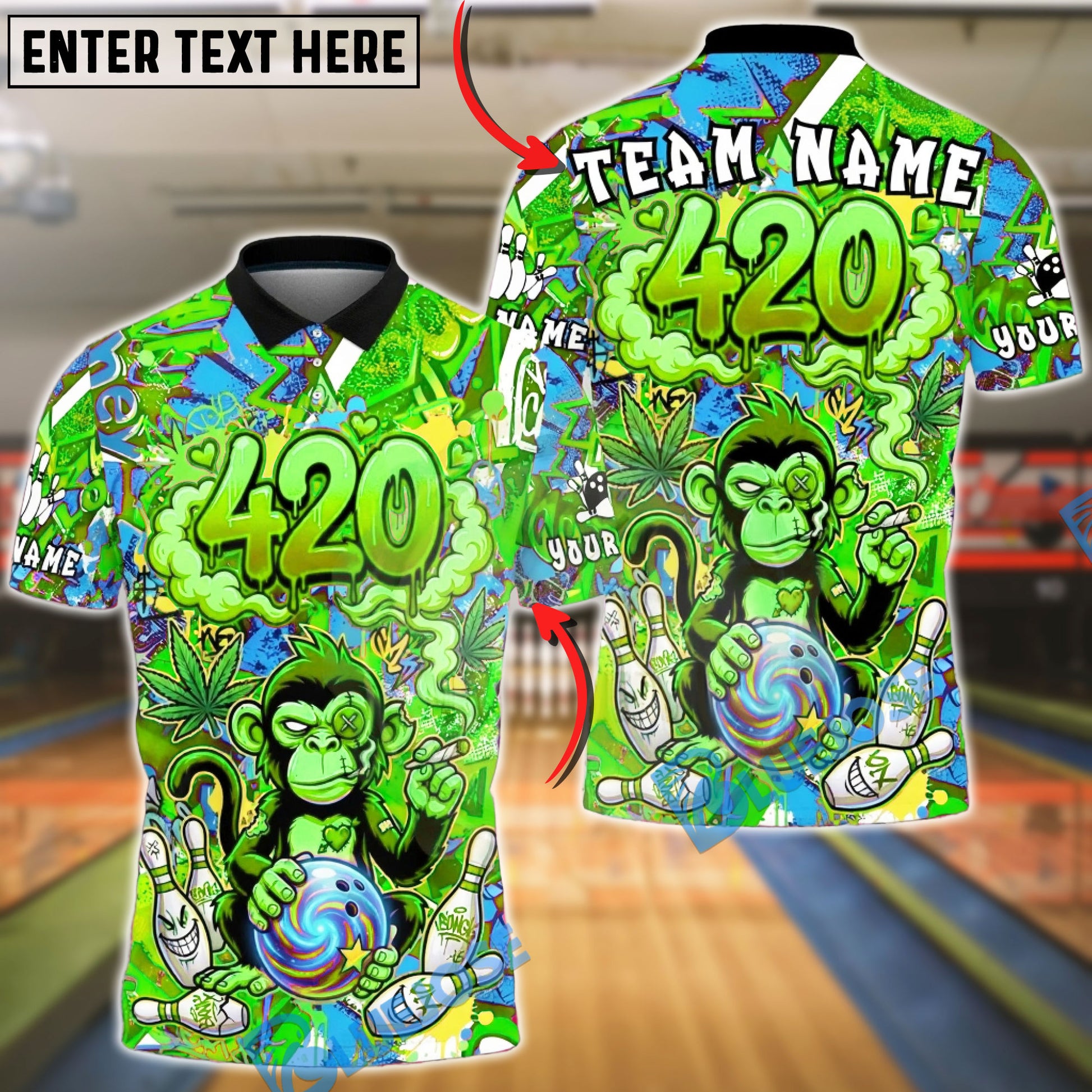 BlueJose Bowling 420 Monkey Graffiti Art Customized Name, Team Name 3D Shirt (4 Colors)