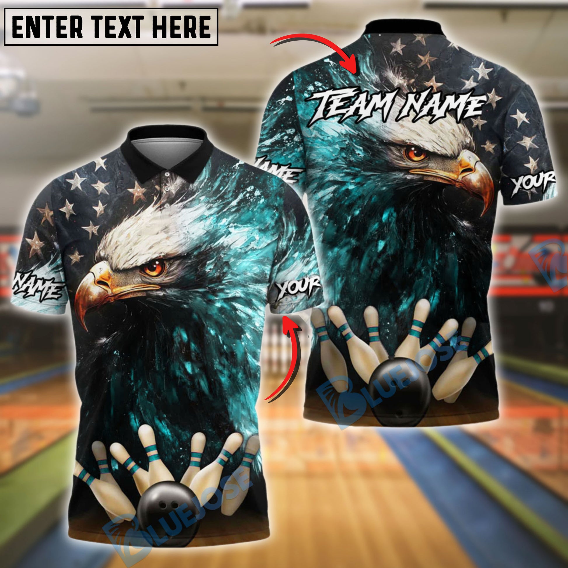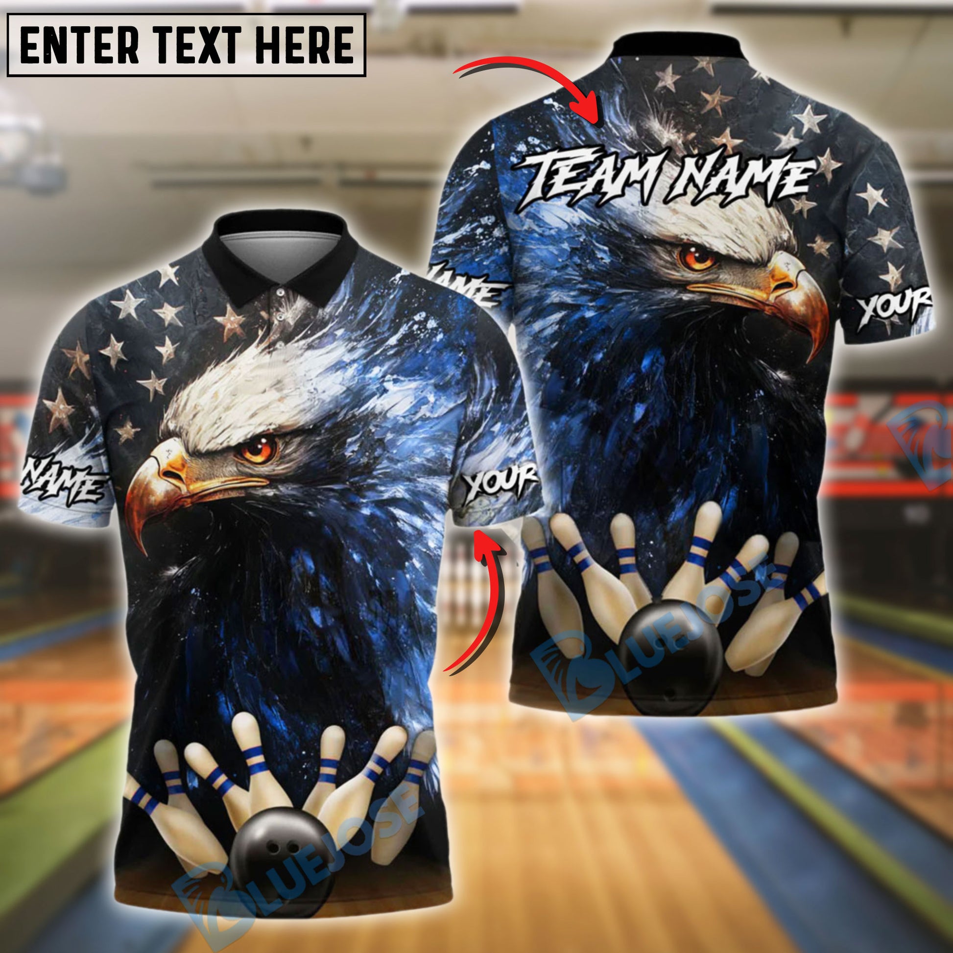 BlueJose Bowling American Eagle Power Strike Customized Name, Team Name 3D Shirt (4 Colors)