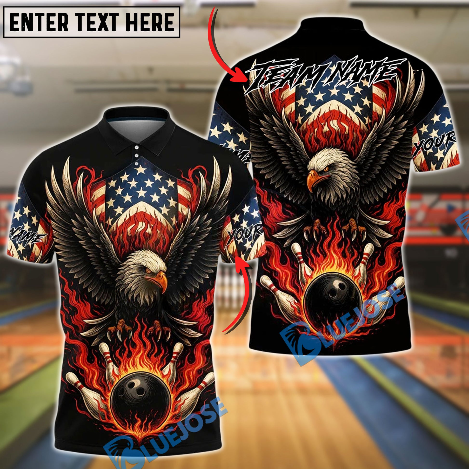 BlueJose Bowling And Pins American Eagle Fire Ball Personalized Shirt