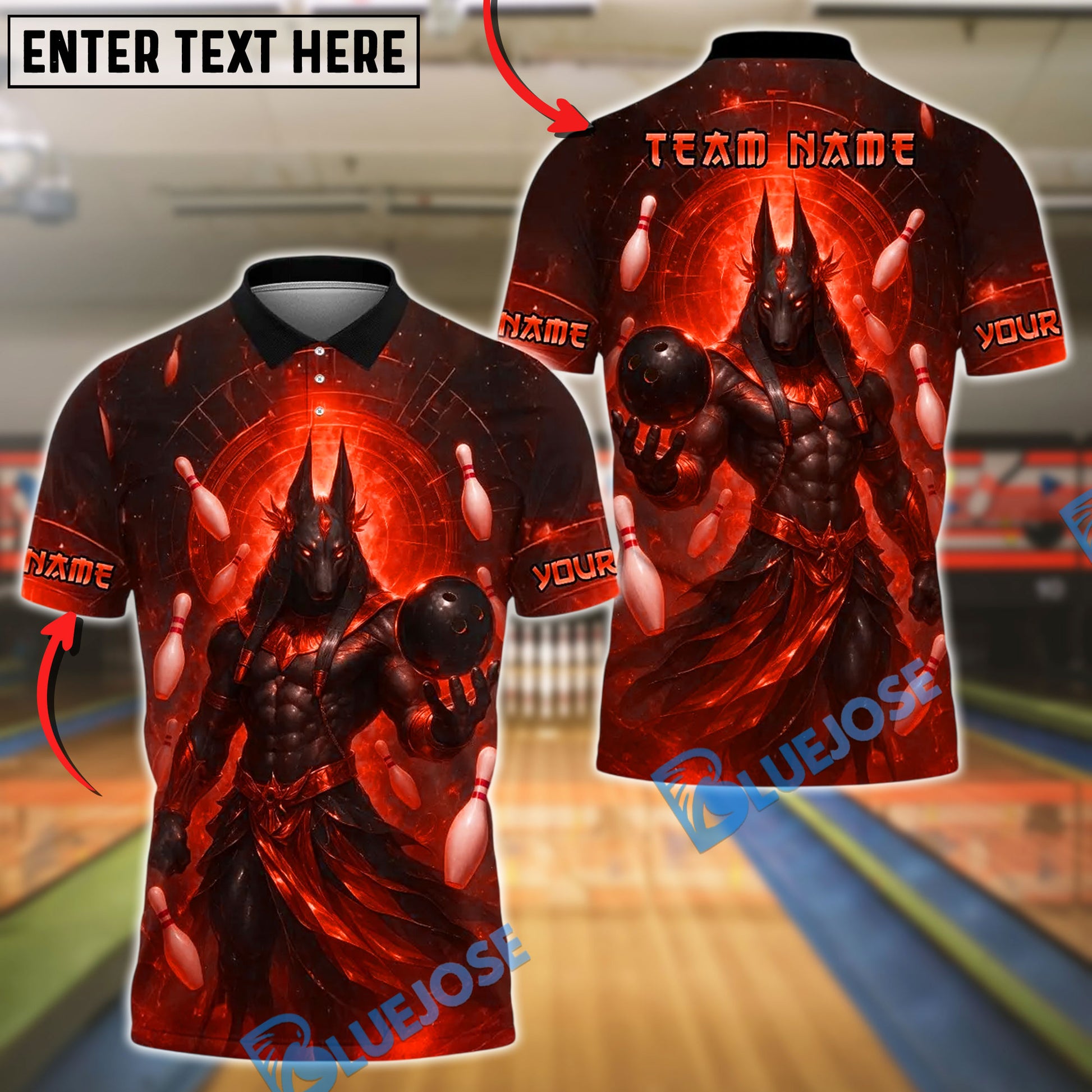 BlueJose Bowling And Pins Ancient Egyptian God Anubis Customized Name, Team Name 3D Shirt (4 Colors)