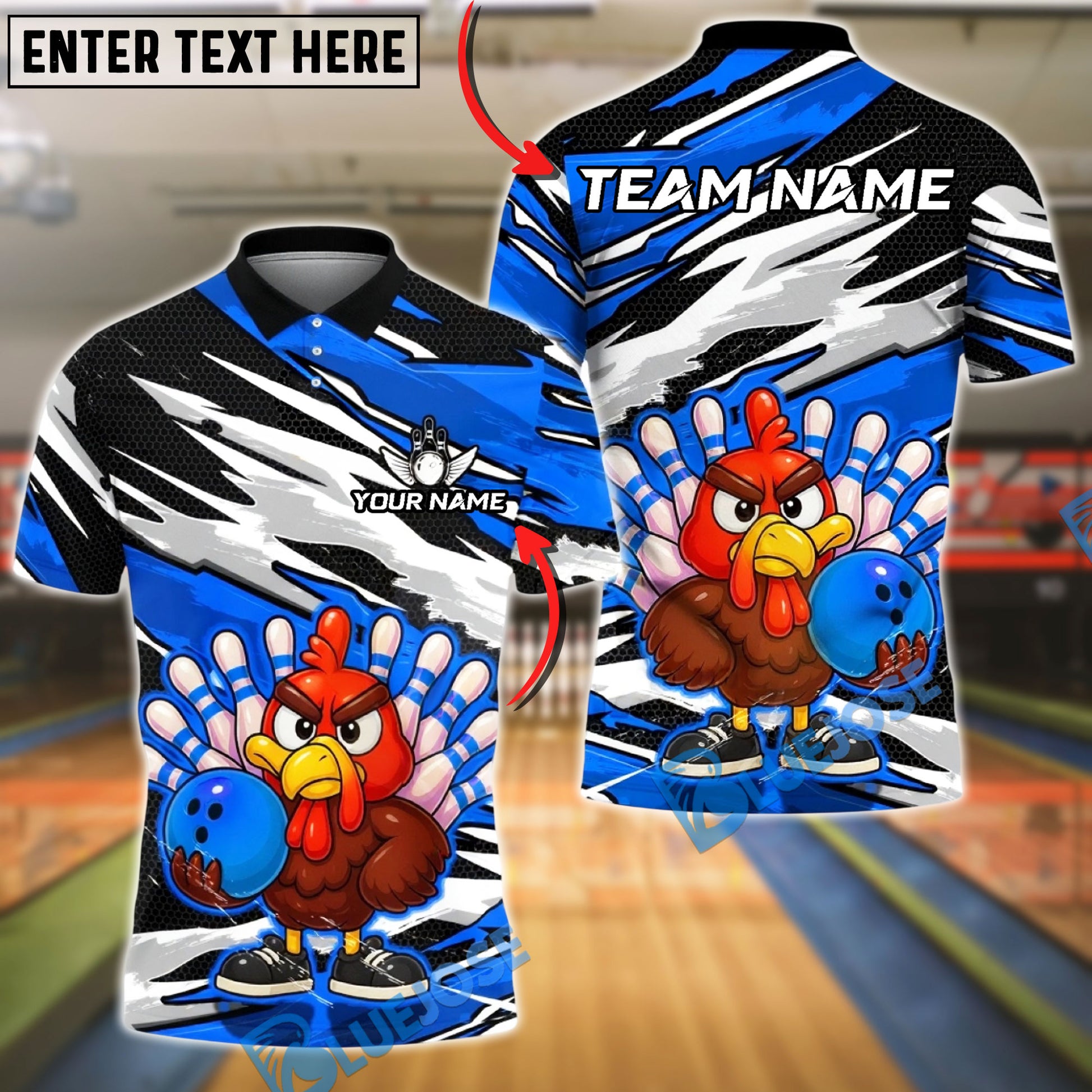 BlueJose Bowling And Pins Angry Turkey Customized Name, Team Name 3D Shirt (4 Colors)