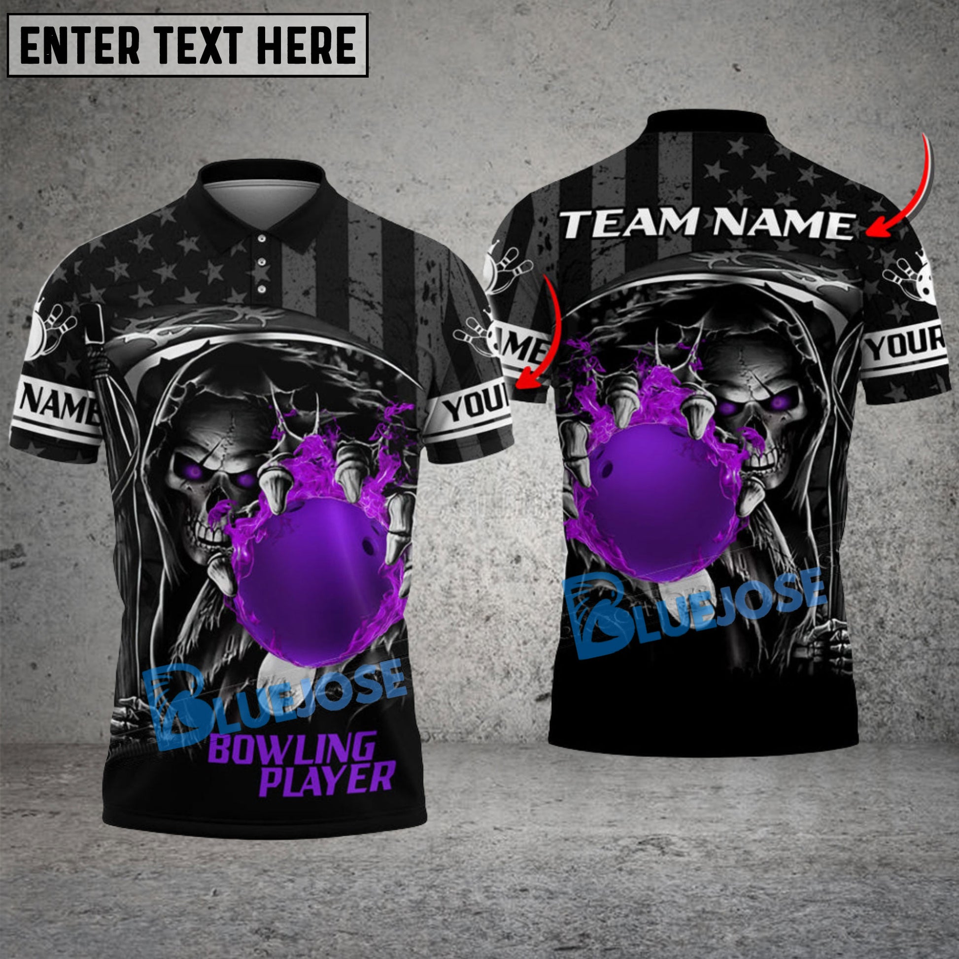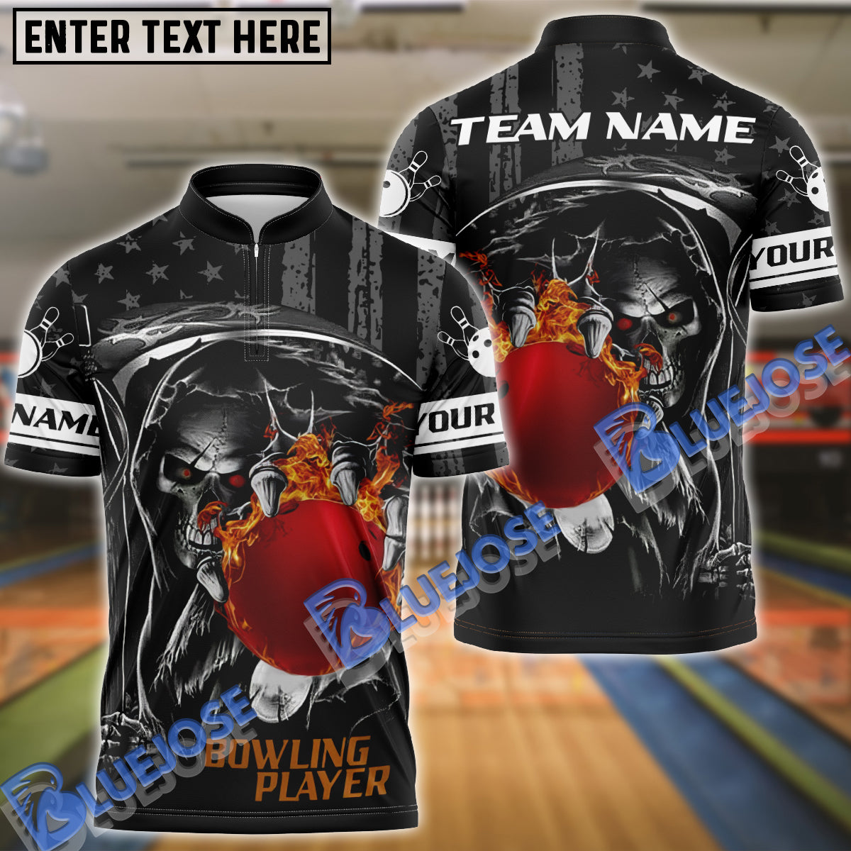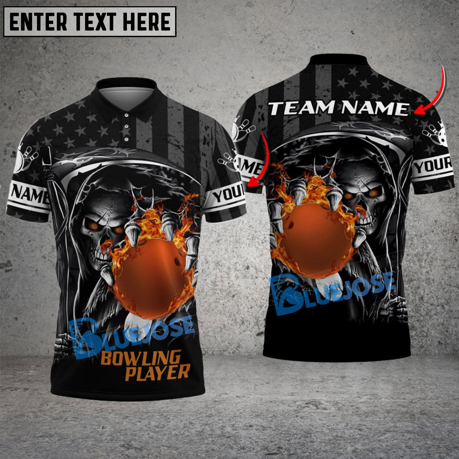 BlueJose Bowling And Pins Black American Flag Fire Reaper Customized Name 3D Shirt (4 Colors)