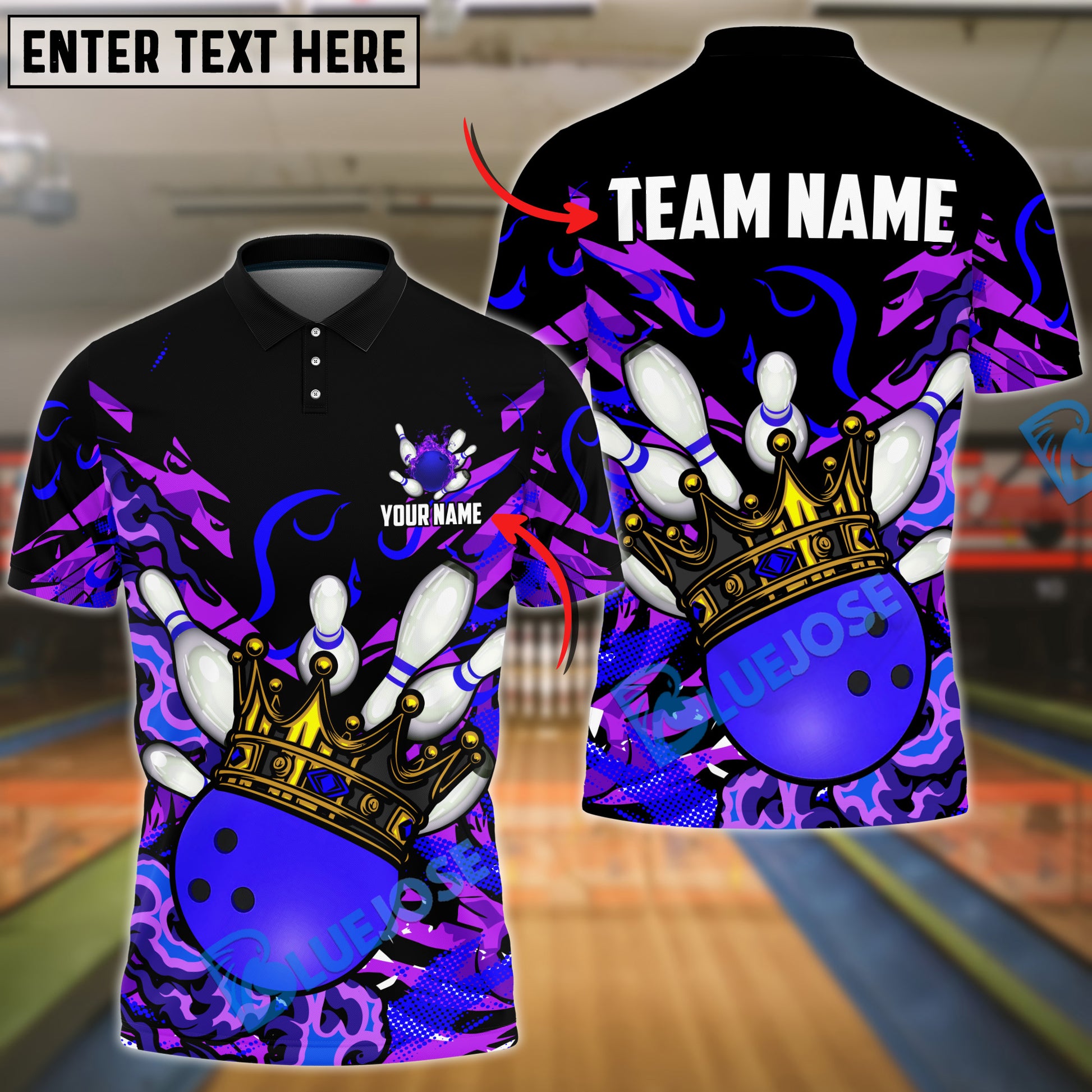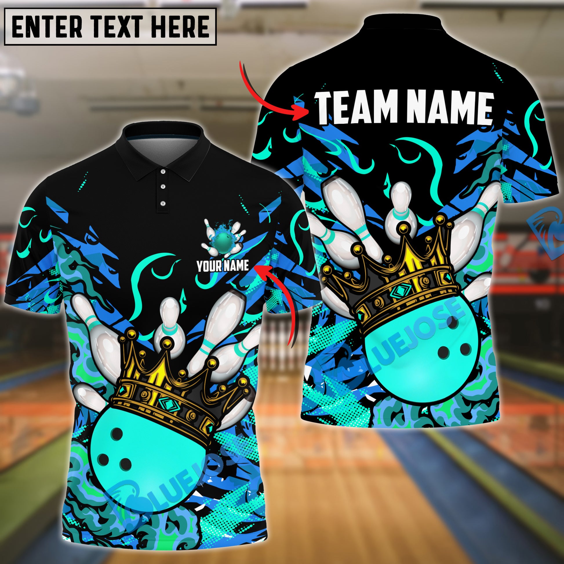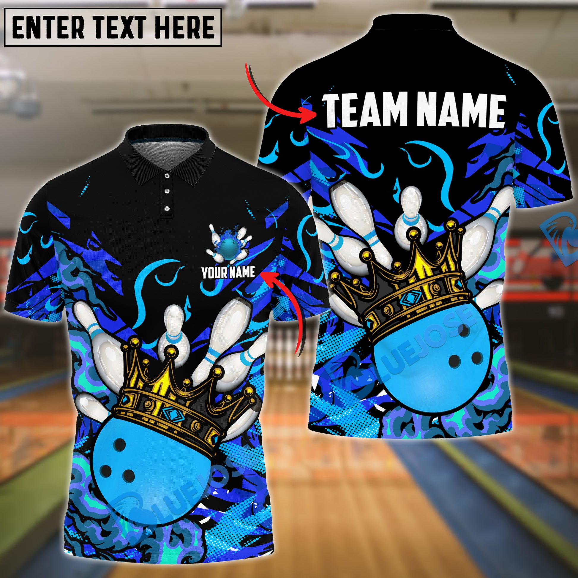 BlueJose Bowling And Pins Burning King Crown Customized Name, Team Name 3D Shirt (4 Colors)