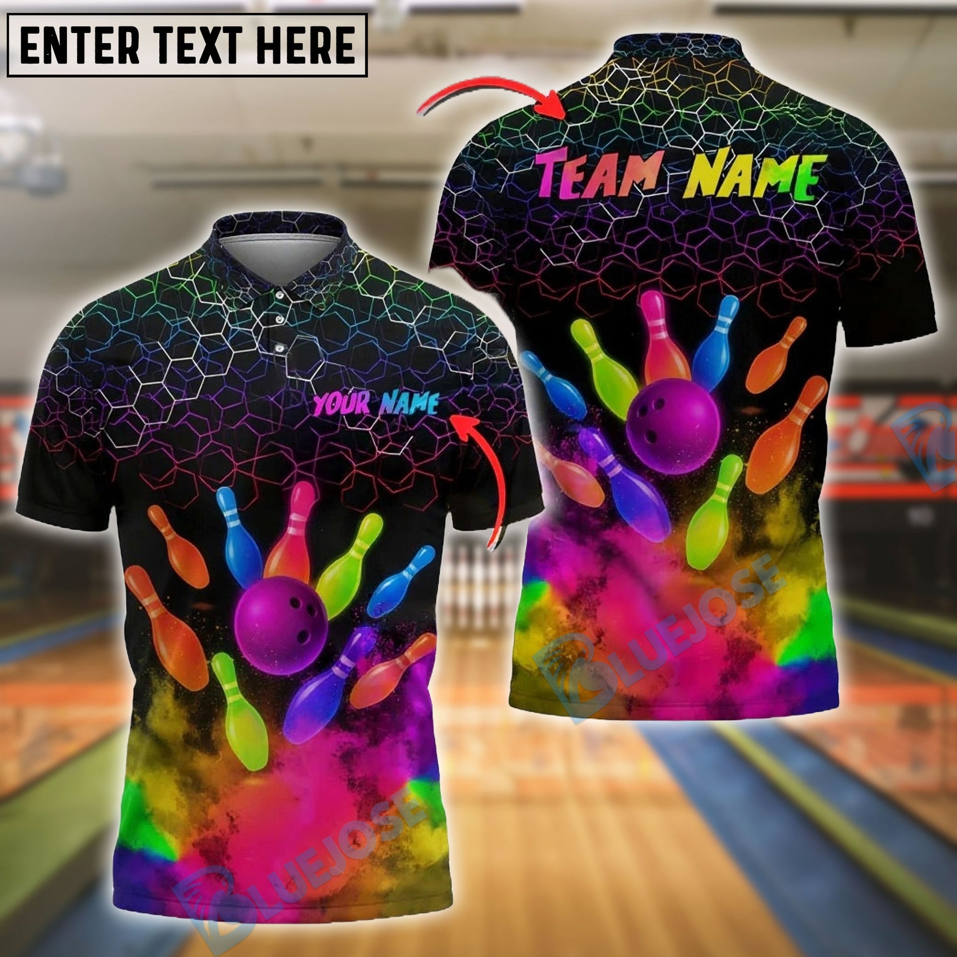 BlueJose Bowling And Pins Colorful Smoke Customized Name, Team Name 3D Shirt