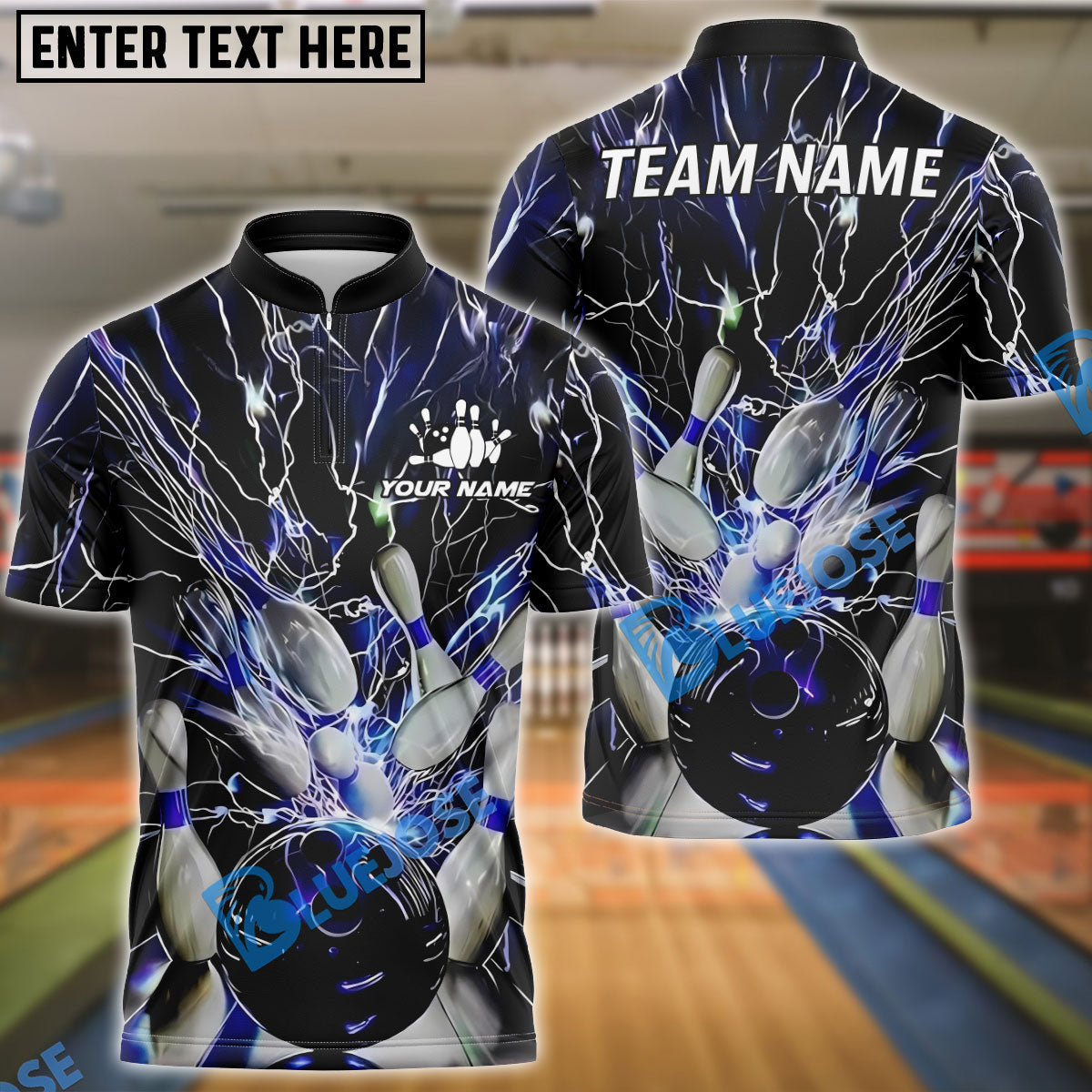 BlueJose Bowling And Pins Colorful Thunder Lightning Customized Name 3D Shirt (4 Colors)