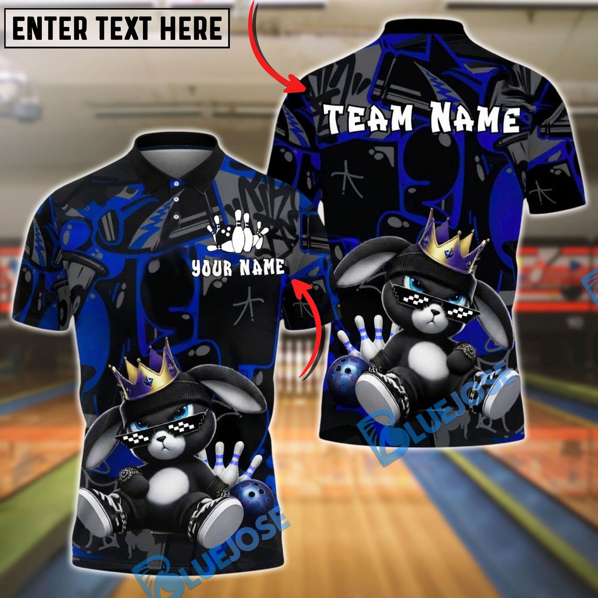 BlueJose Bowling And Pins Cool Bunny King Cartoon Customized Name, Team Name 3D Shirt (4 Colors)
