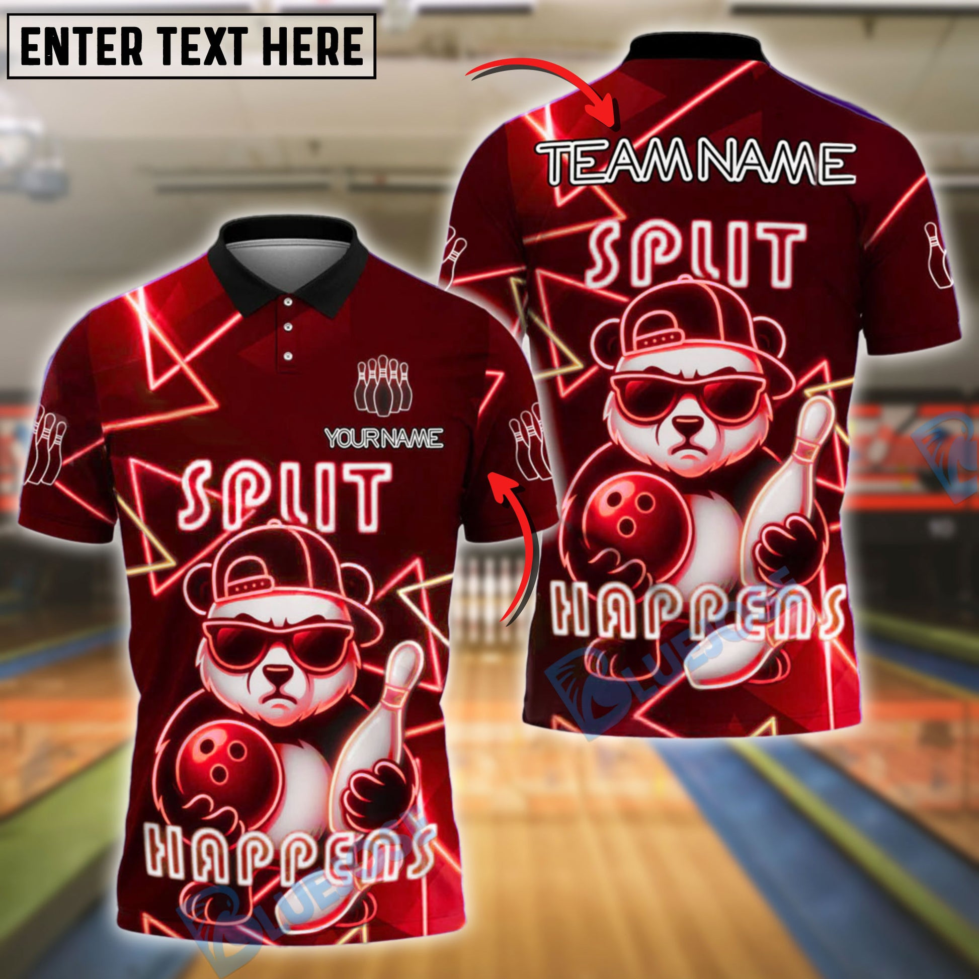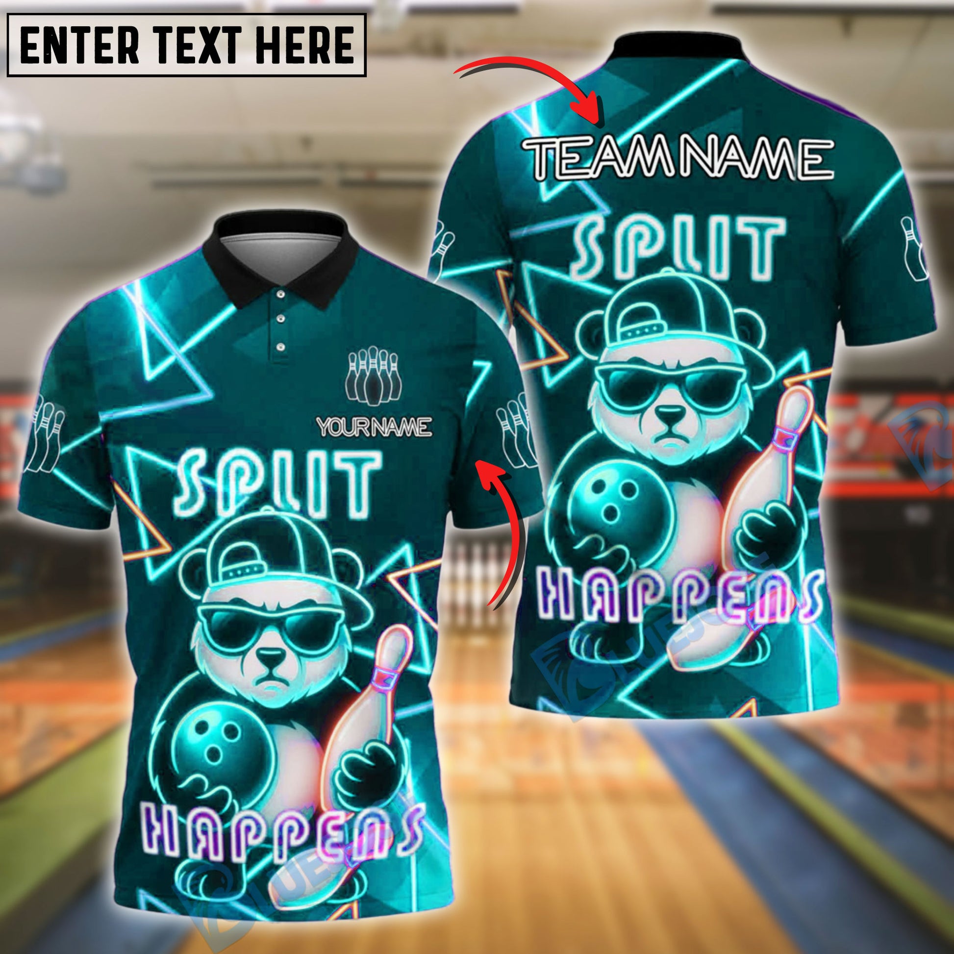 BlueJose Bowling And Pins Cool Panda Split Happens Neon Design Customized Name, Team Name 3D Shirt (4 Colors)