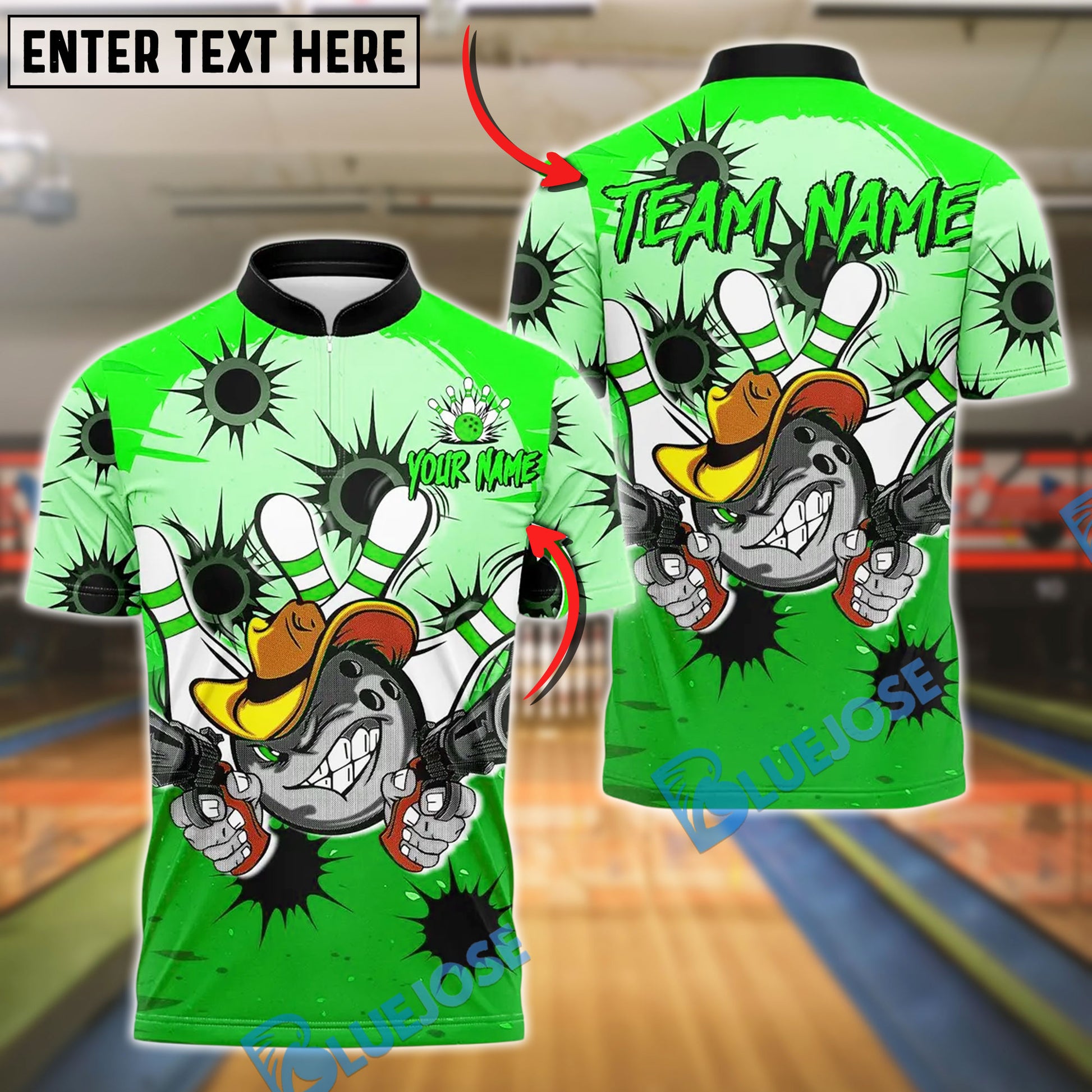 BlueJose Bowling And Pins Cowboy With Bullet Holes Design Customized Name, Team Name 3D Shirt (4 Colors)