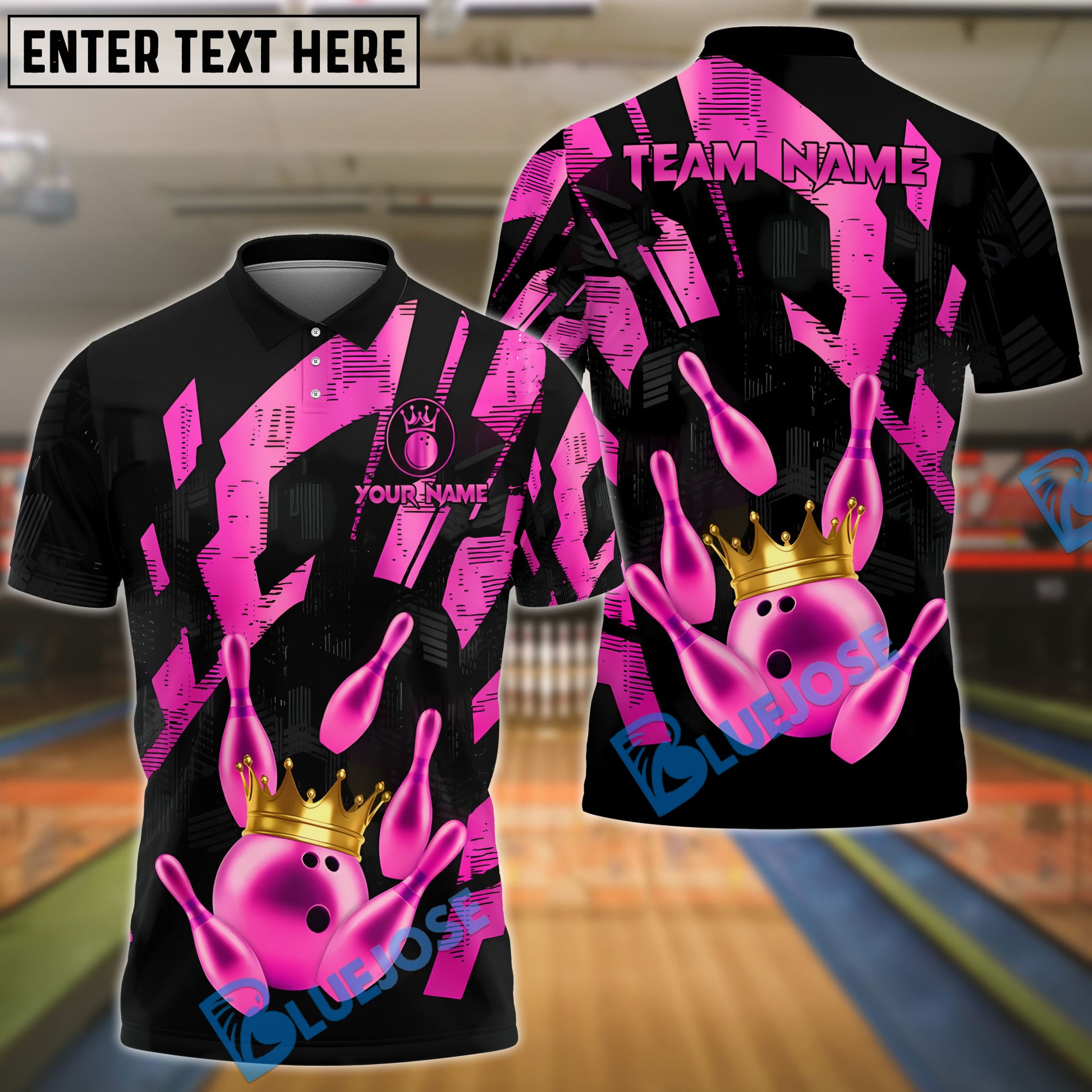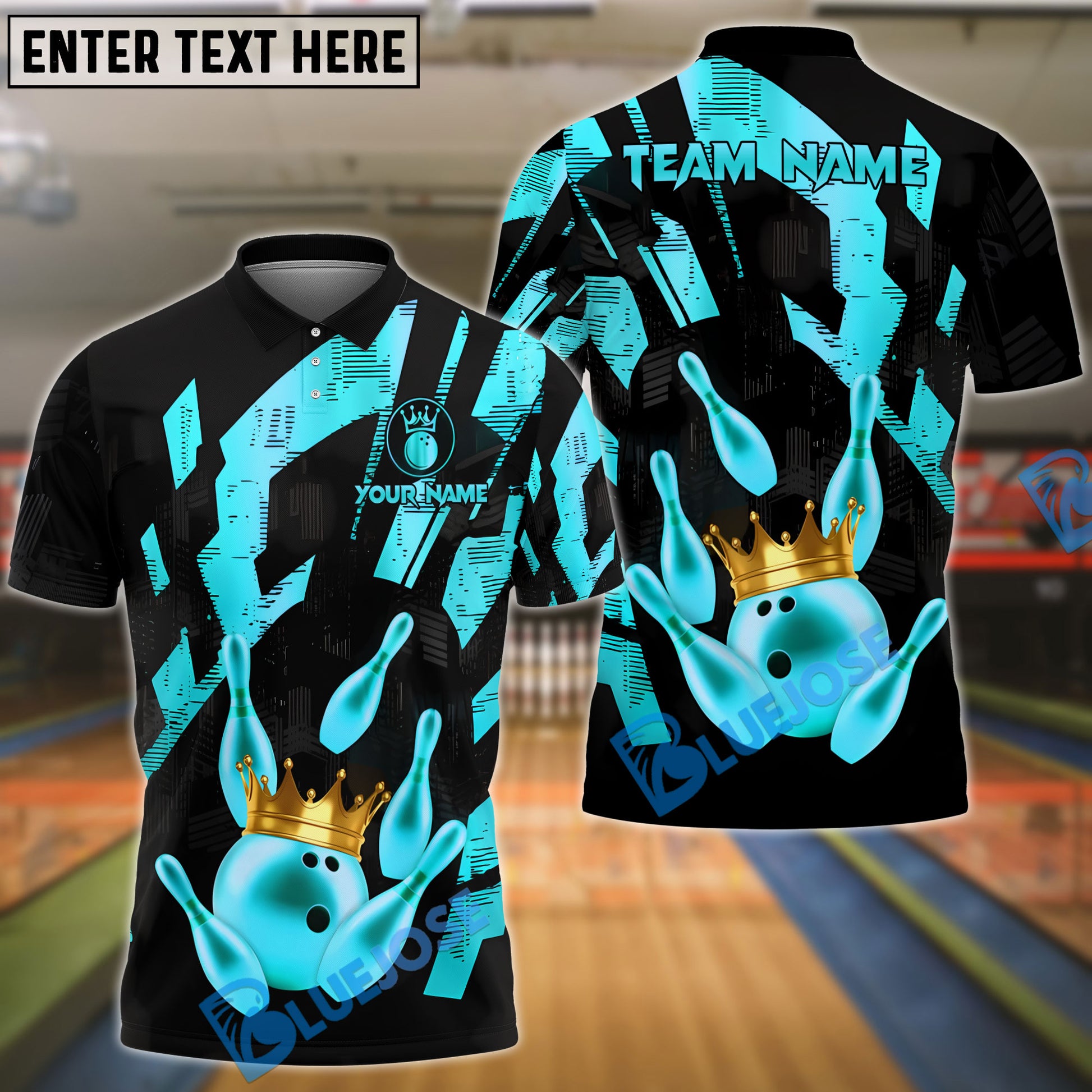 BlueJose Bowling And Pins Crowned King Customized Name 3D Shirt (6 Colors)
