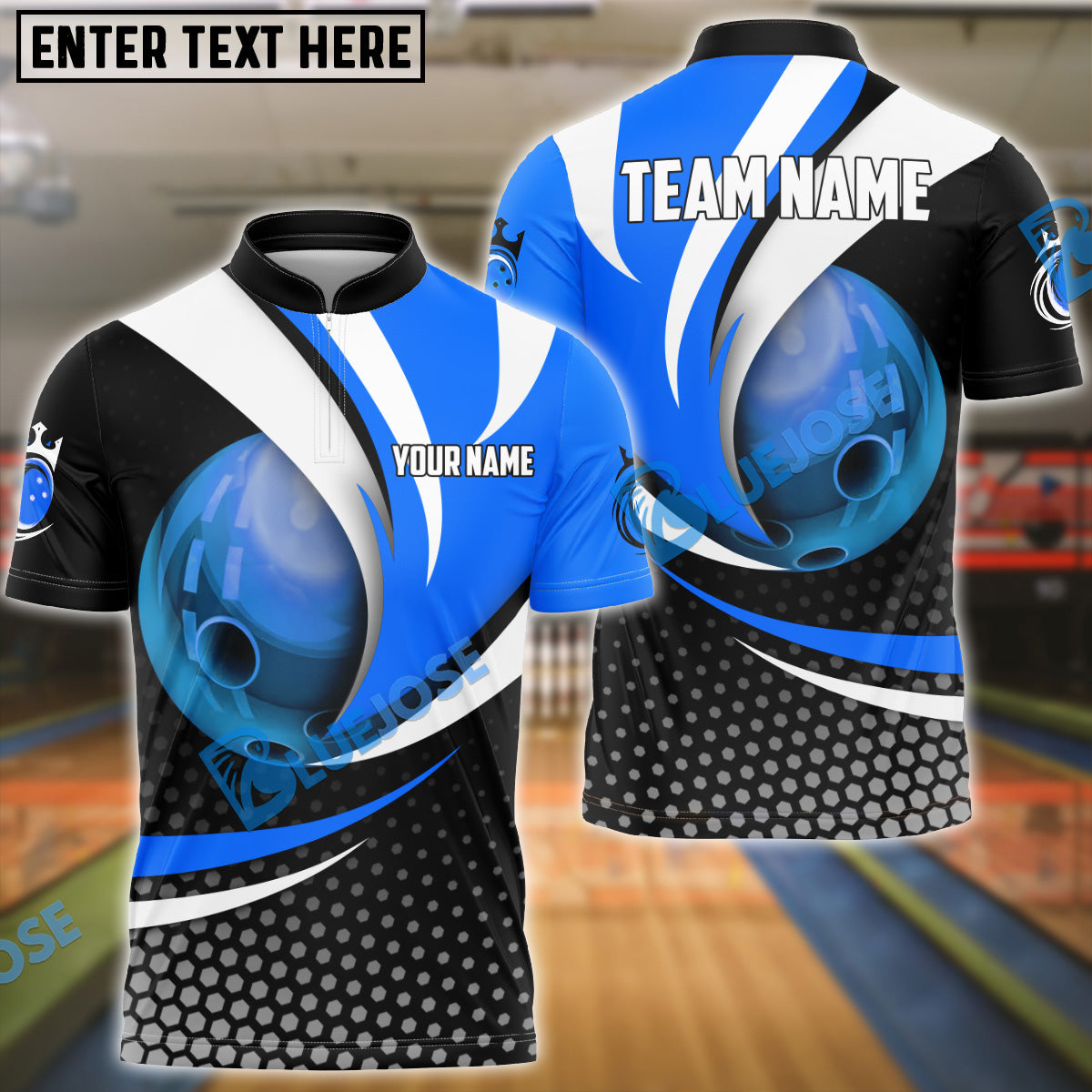BlueJose Bowling And Pins Curved Strike Customized Name 3D Shirt (6 Colors)