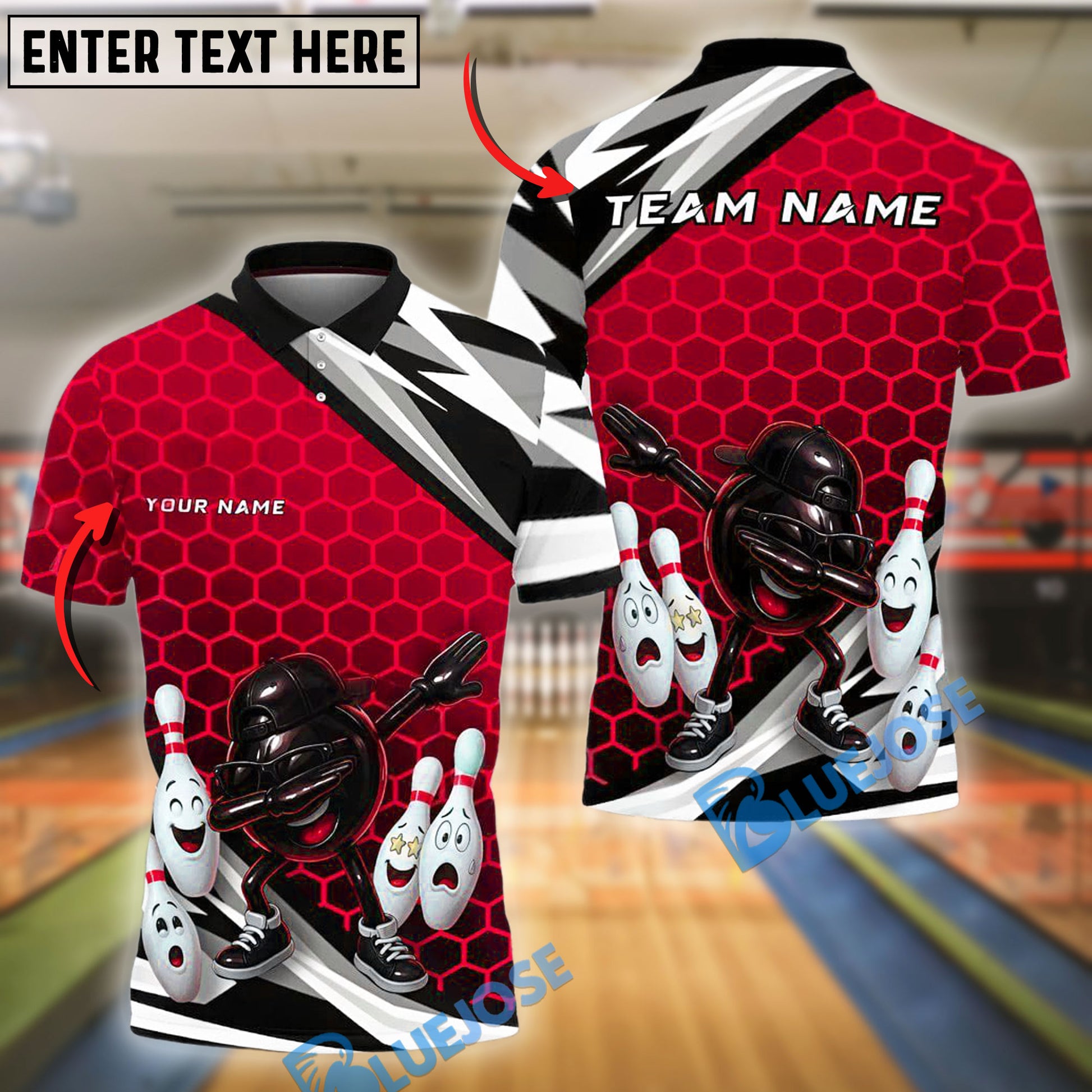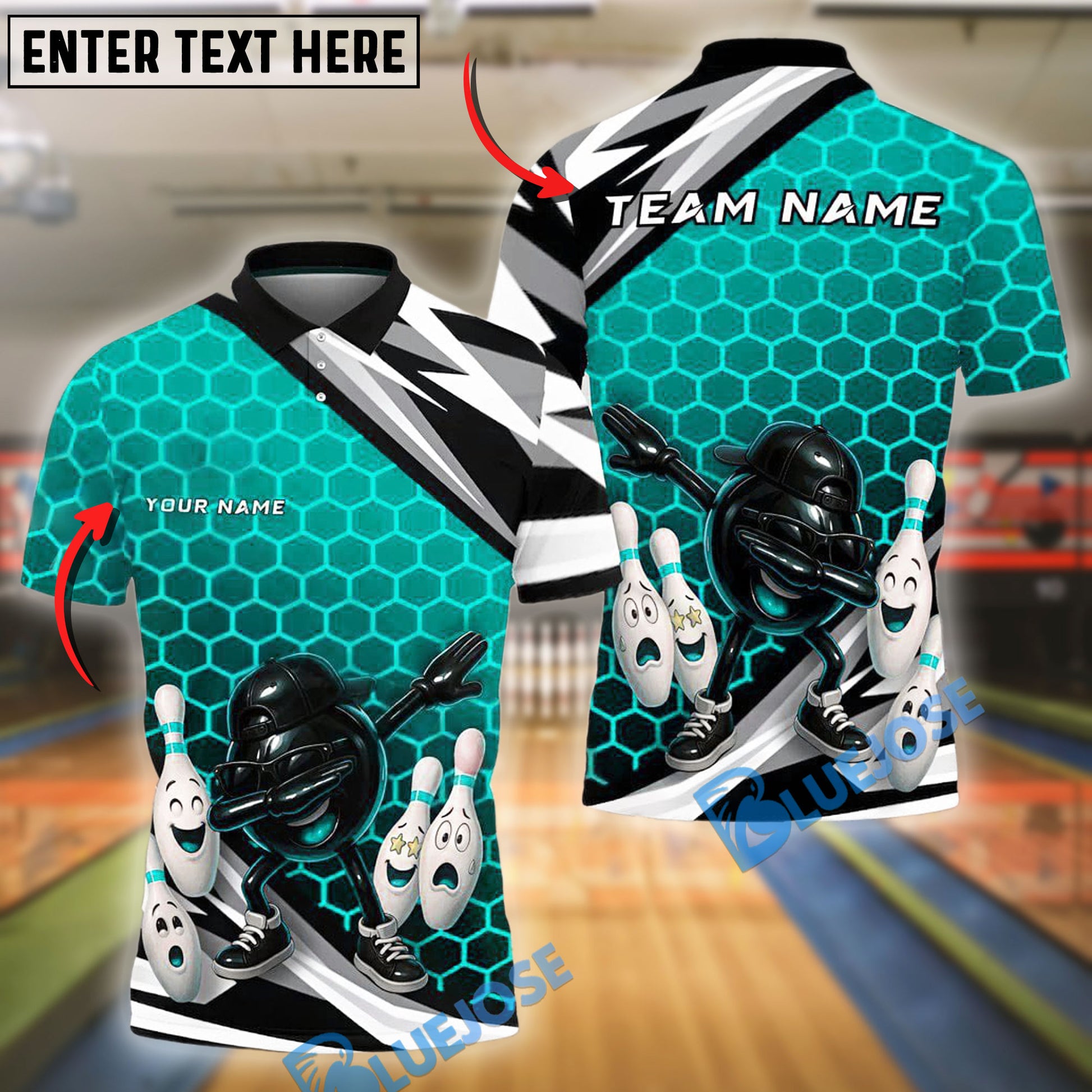 BlueJose Bowling And Pins Dabbing Ball Hex Style Customized Name, Team Name 3D Shirt (4 Colors)