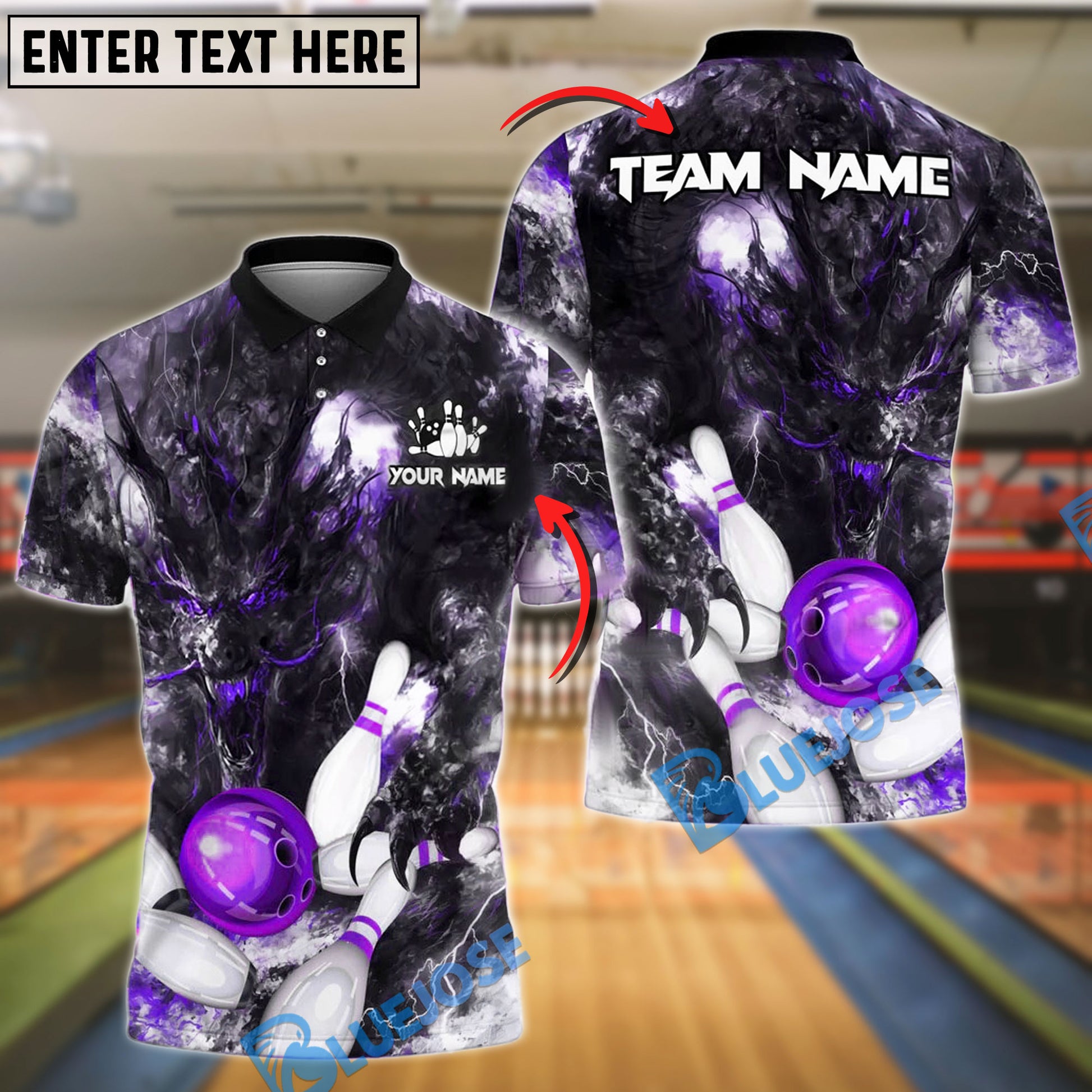 BlueJose Bowling And Pins Demon Strike Lightning Customized Name, Team Name 3D Shirt (4 Colors)
