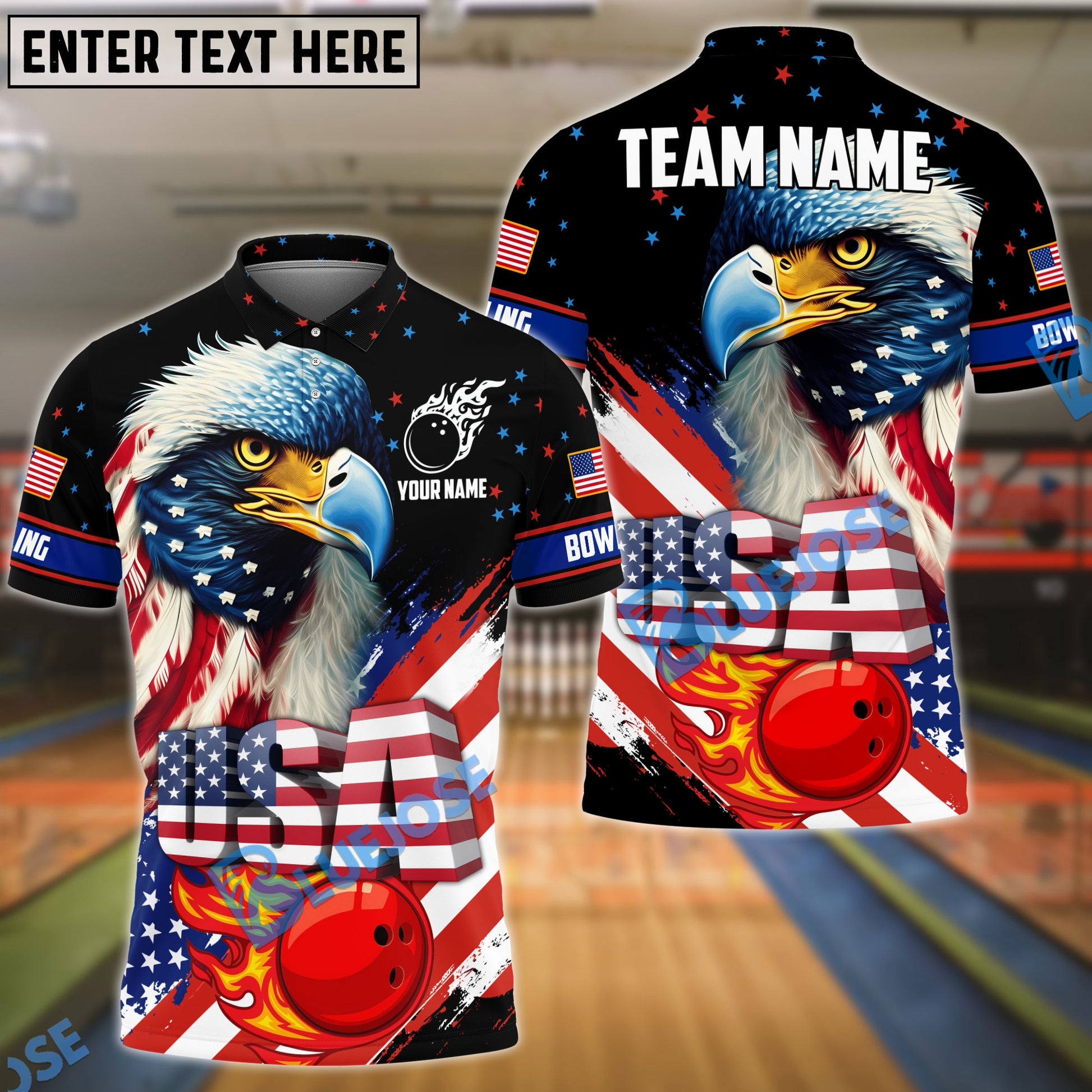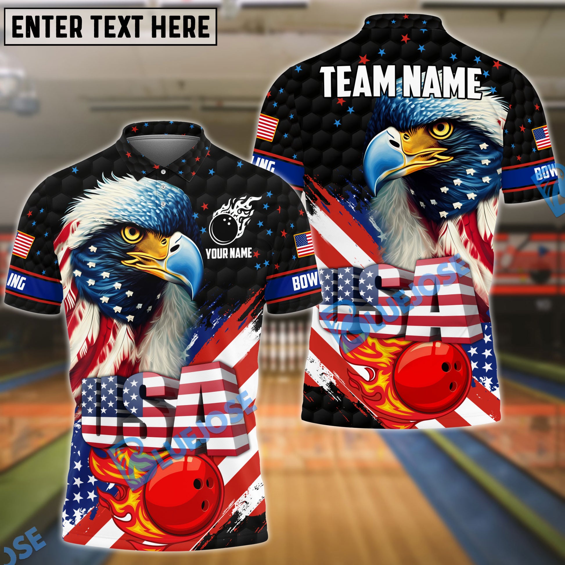 BlueJose Bowling And Pins Eagle Flag Star Customized Name, Team Name 3D Shirt (4 Colors)