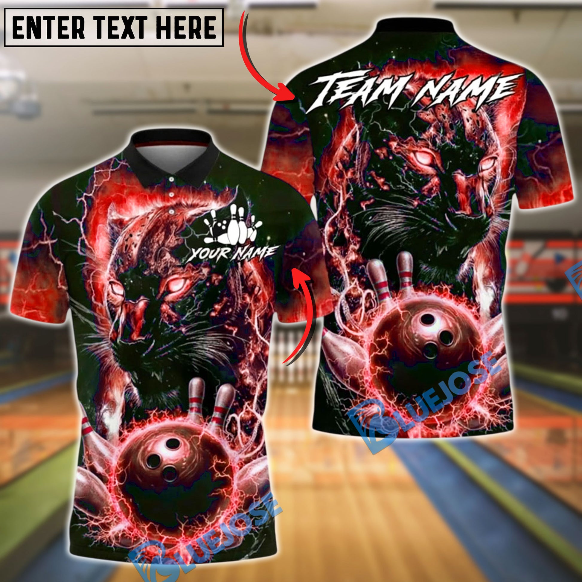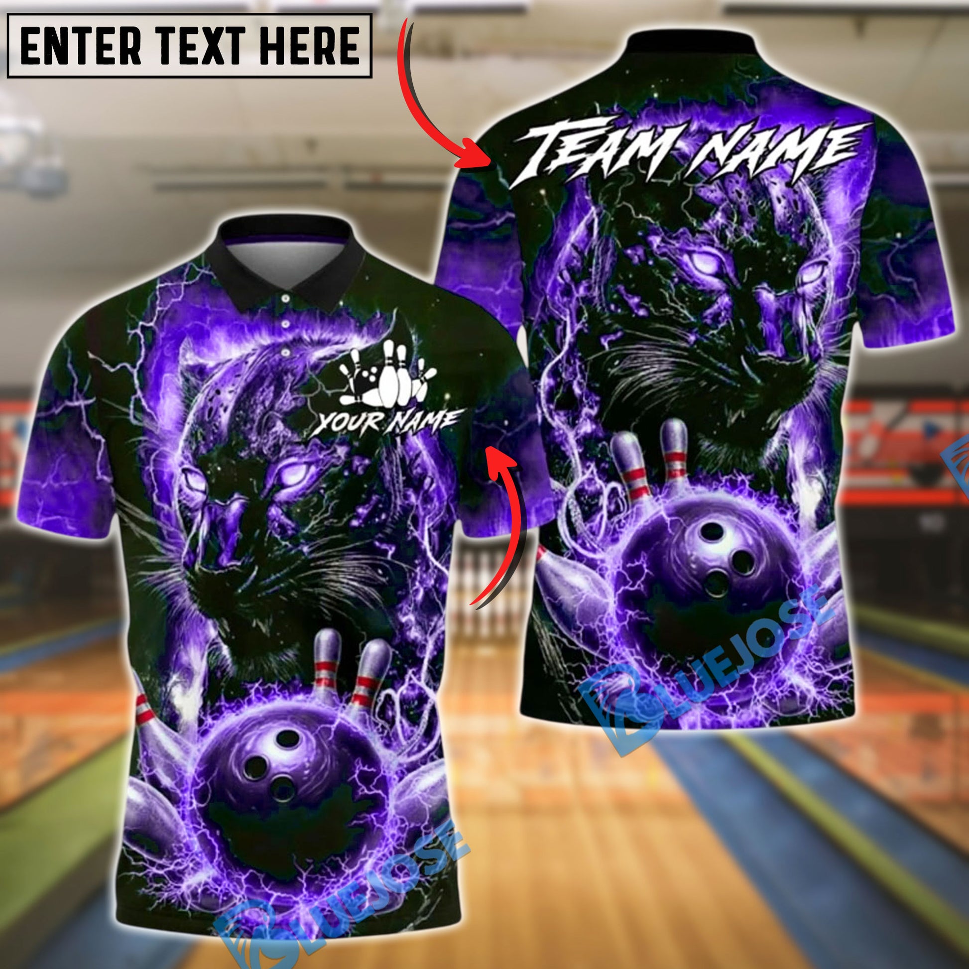 BlueJose Bowling And Pins Electric Panther Lightning Strike Customized Name, Team Name 3D Shirt (6 Colors)