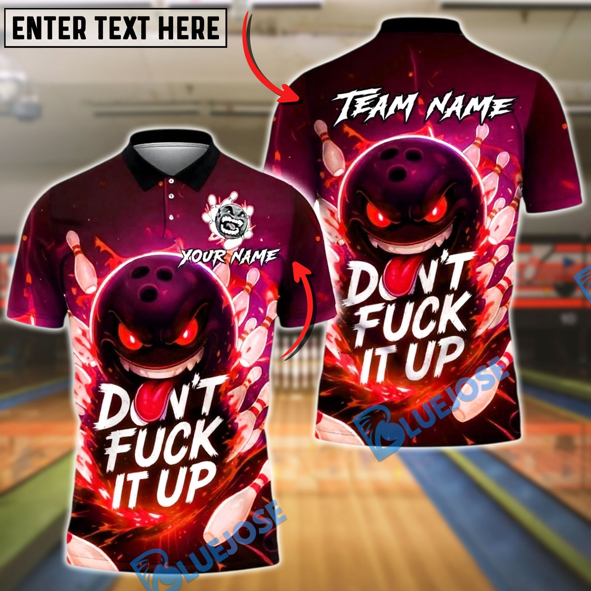BlueJose Bowling And Pins Evil Bowling Ball Customized Name, Team Name 3D Shirt (4 Colors)