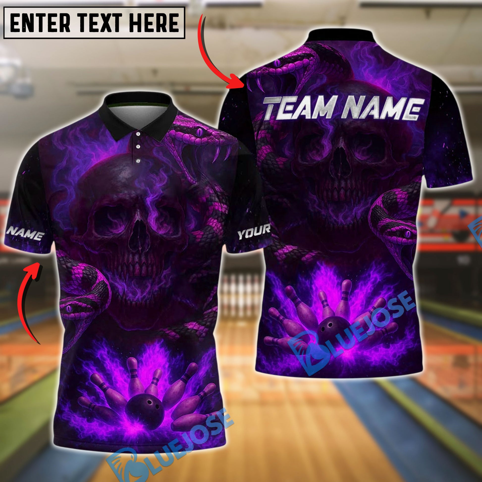 BlueJose Bowling And Pins Evil Snake Skull Smoke Design Customized Name, Team Name 3D Shirt (4 Colors)