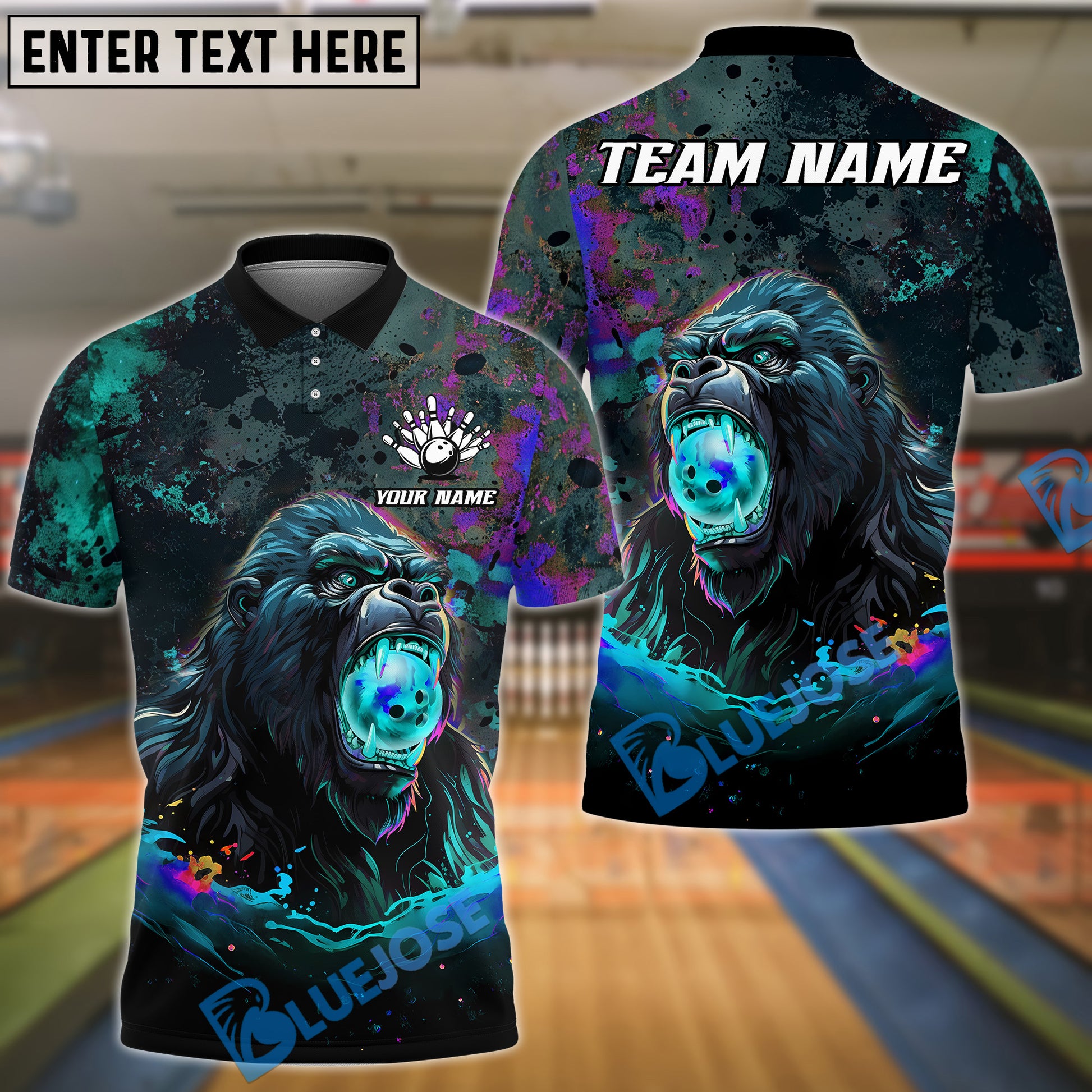 BlueJose Bowling And Pins Fierce Gorilla Customized Name, Team Name 3D Shirt (4 Colors)