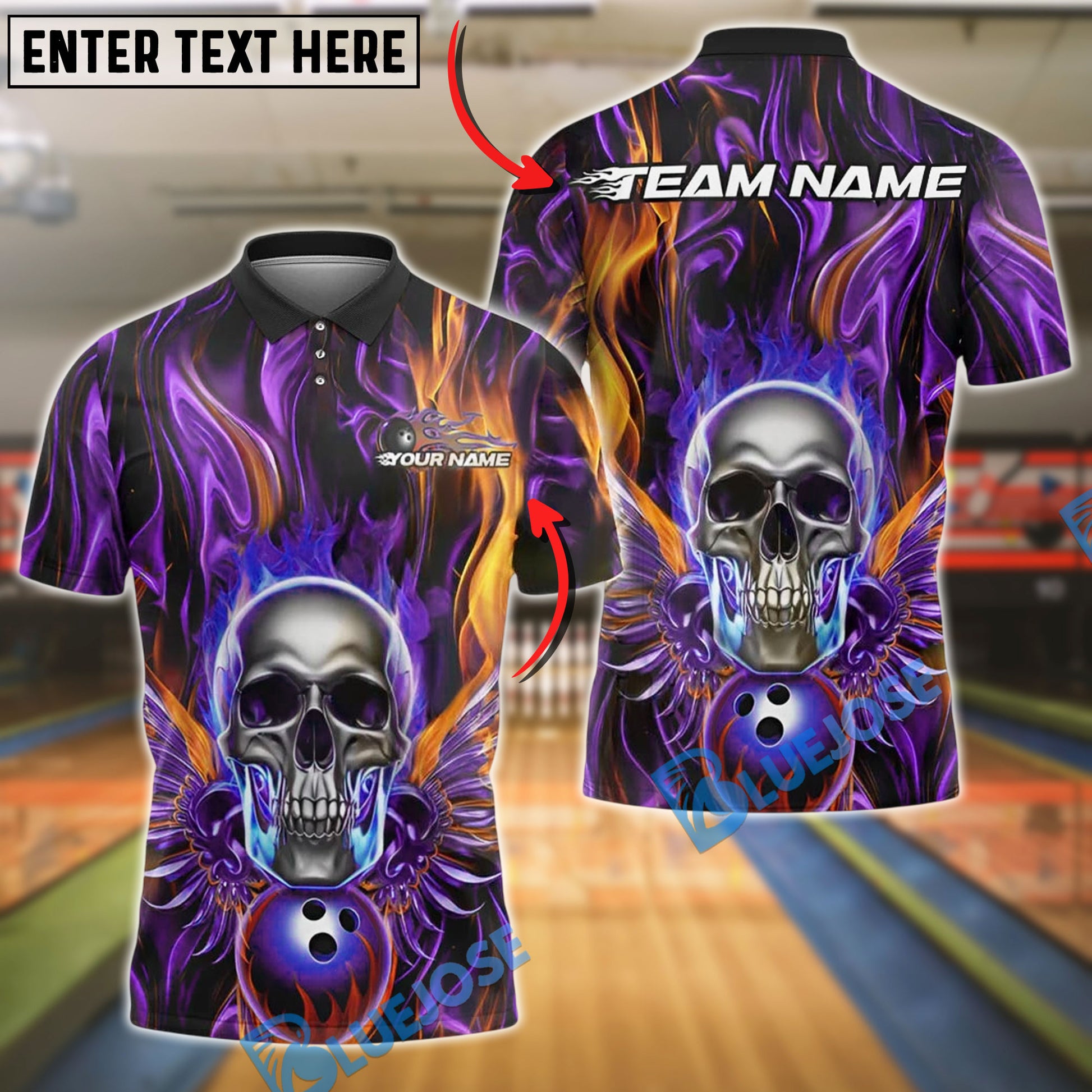 BlueJose Bowling And Pins Fiery Skull Flame Wings Customized Name, Team Name 3D Shirt (4 Colors)