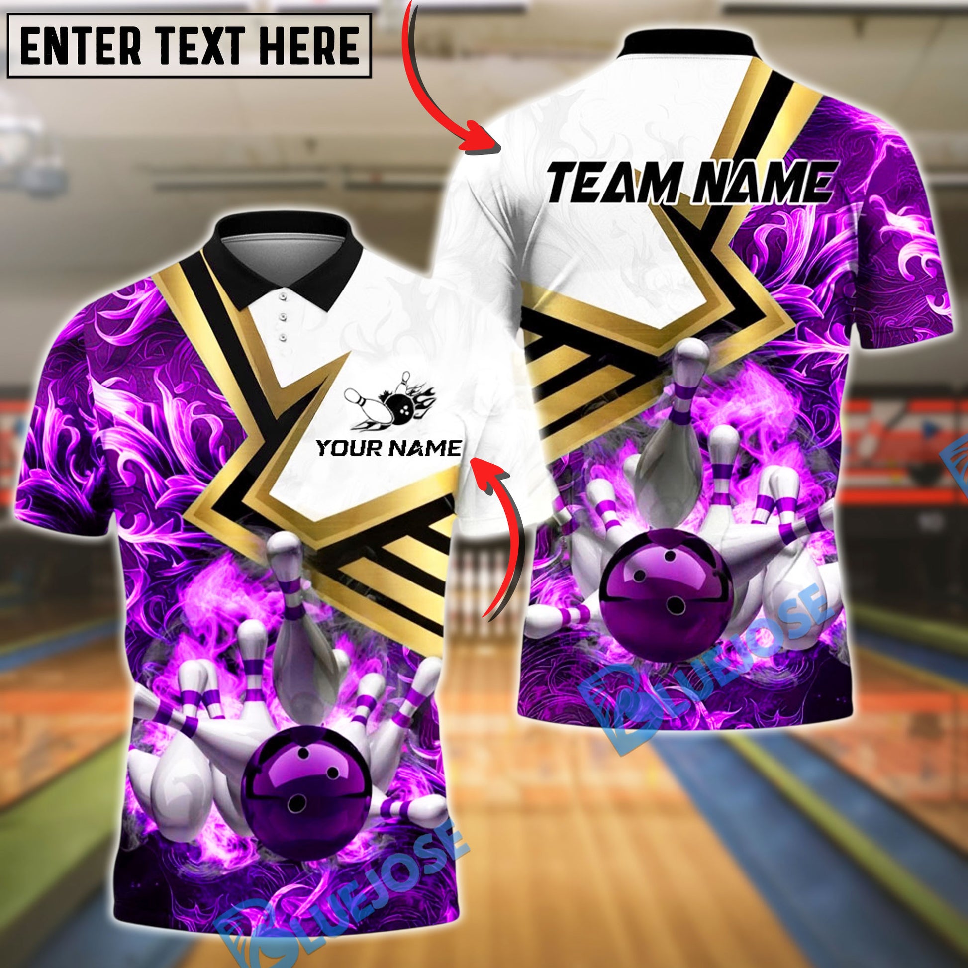 BlueJose Bowling And Pins Fiery Strike Customized Name, Team Name 3D Shirt (4 Colors)