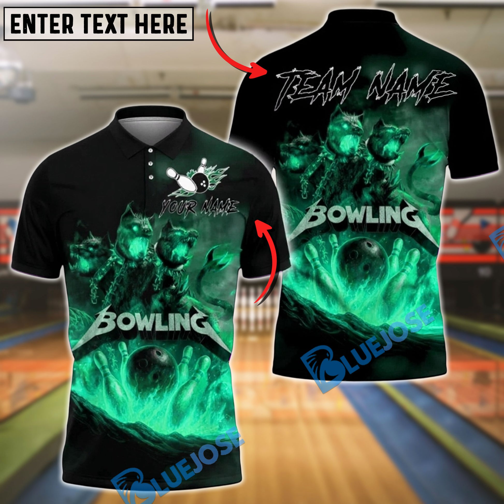 BlueJose Bowling And Pins Fire Cerberus Hell Flames Customized Name, Team Name 3D Shirt (4 Colors)