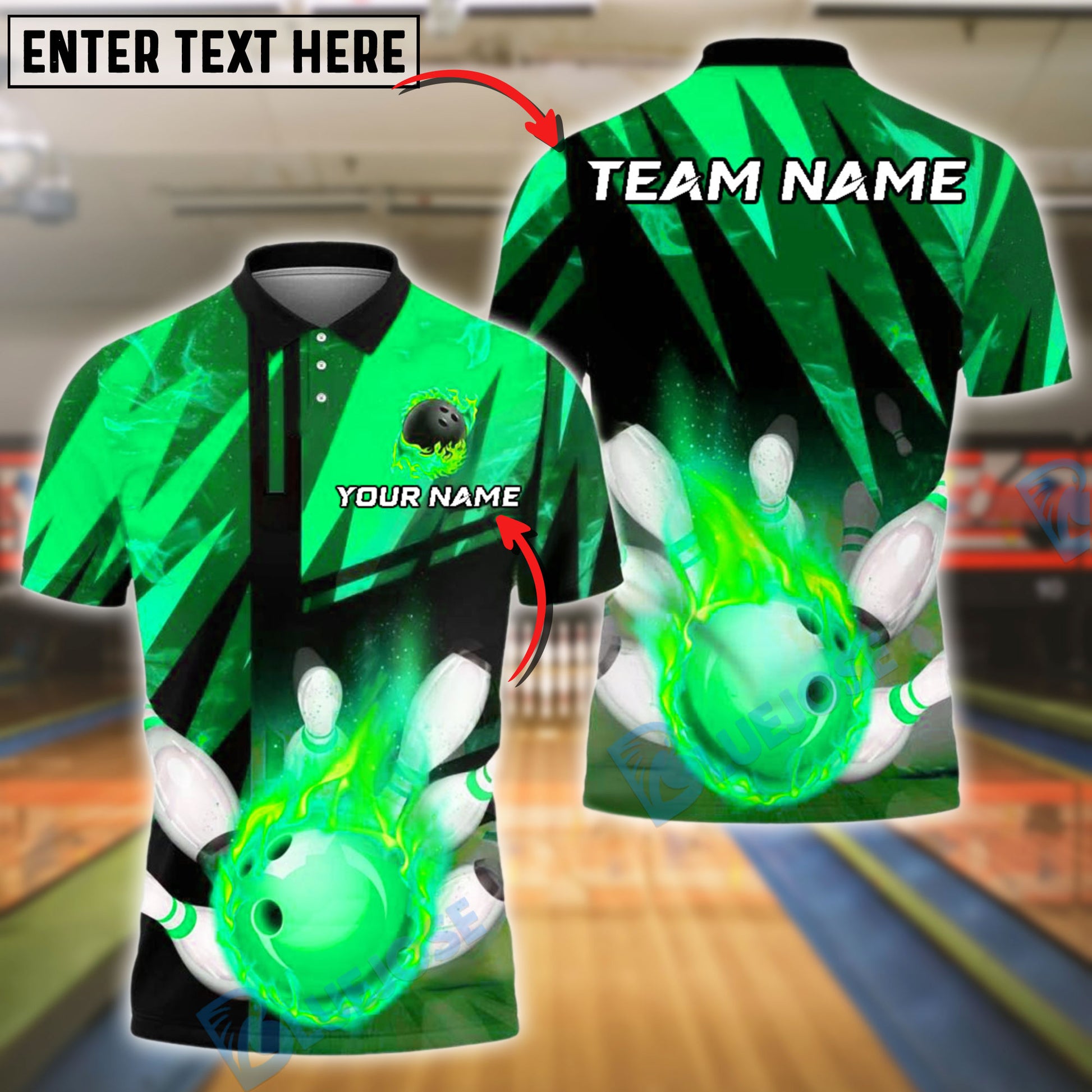 BlueJose Bowling And Pins Fire QN Customized Name 3D Shirt (6 Colors)