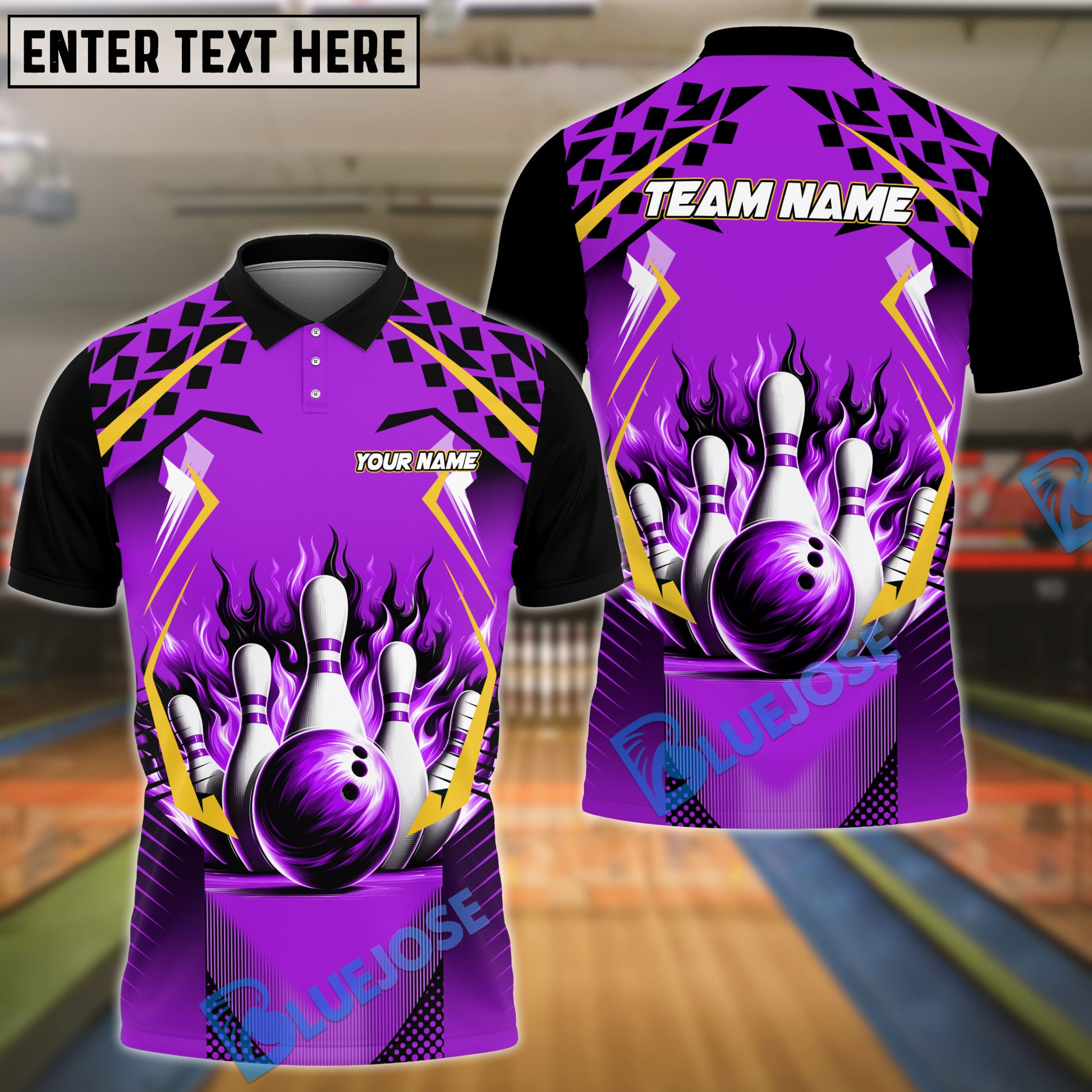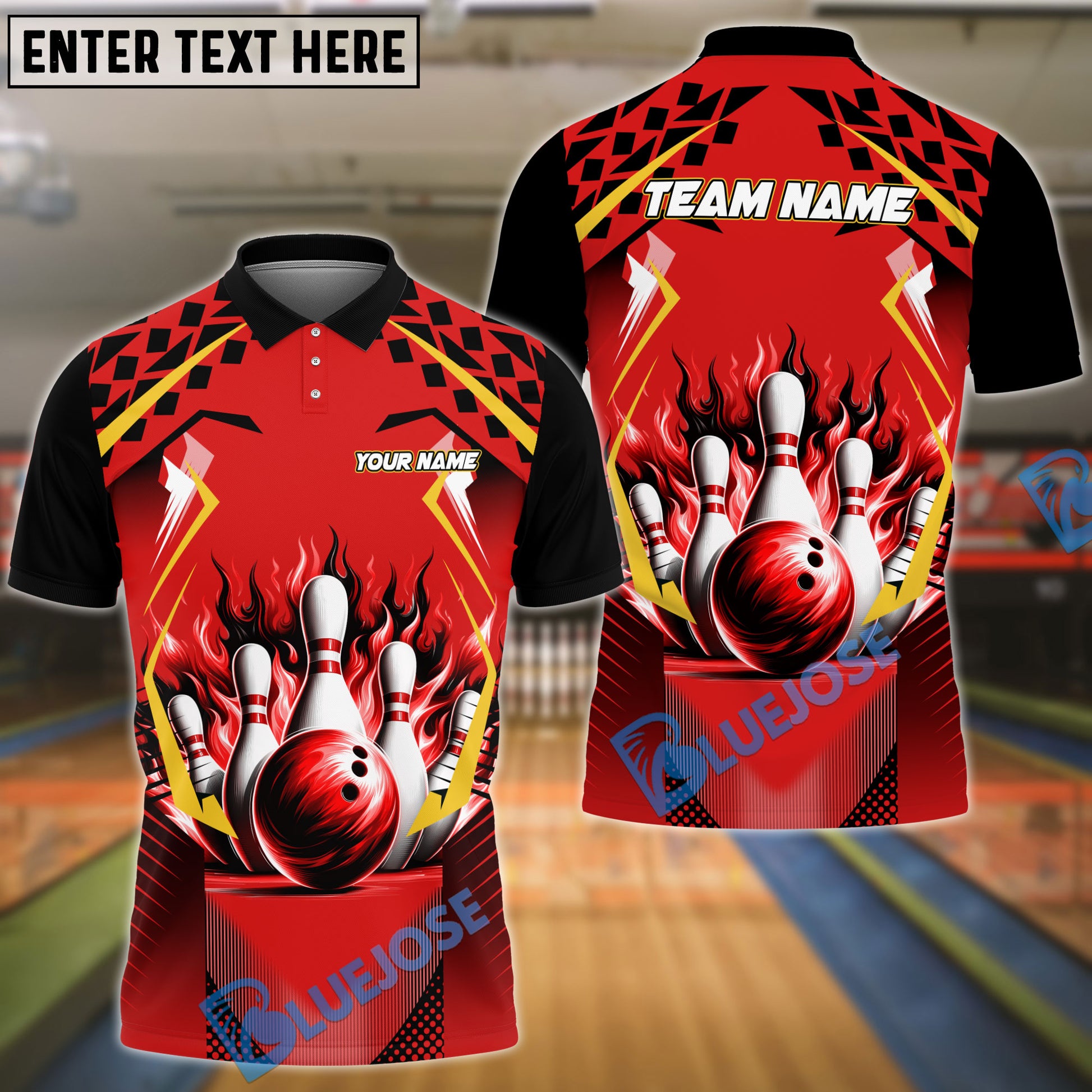 BlueJose Bowling and Pins Fire Flash Flame Personalized Name, Team Name 3D Shirt (4 Colors)
