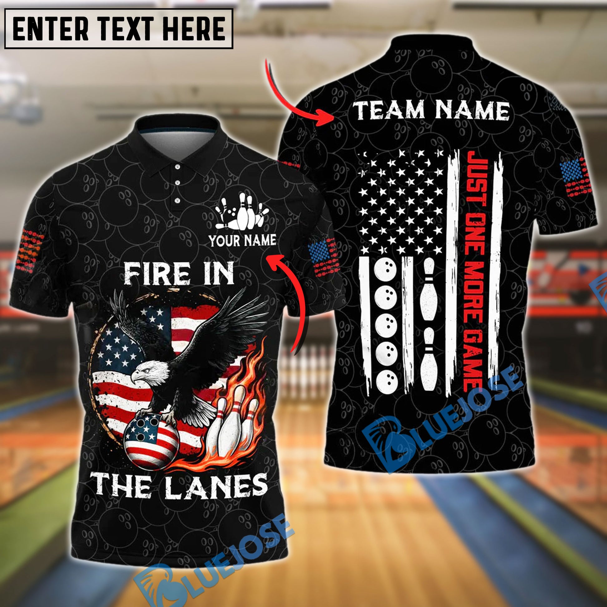 BlueJose Bowling And Pins Fire in the Lanes American Flag Style Personalized Name, Team Name Unisex Shirt