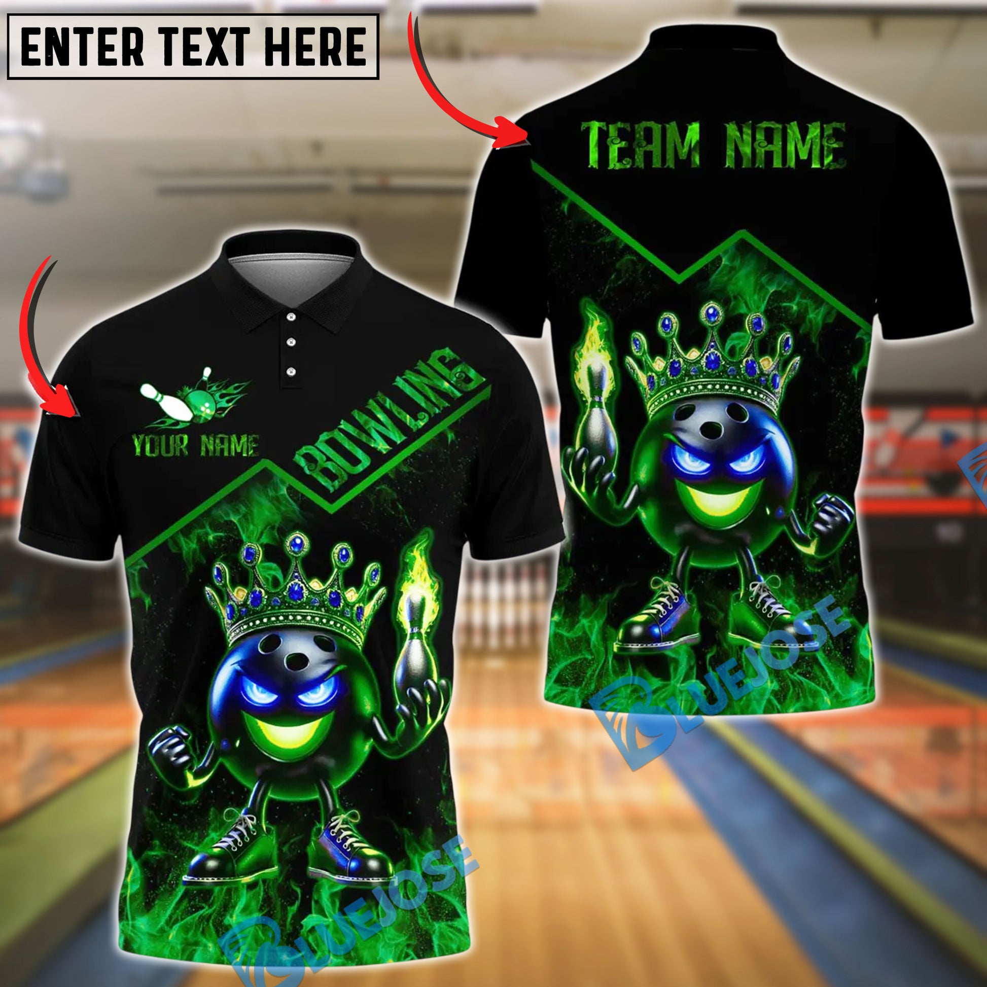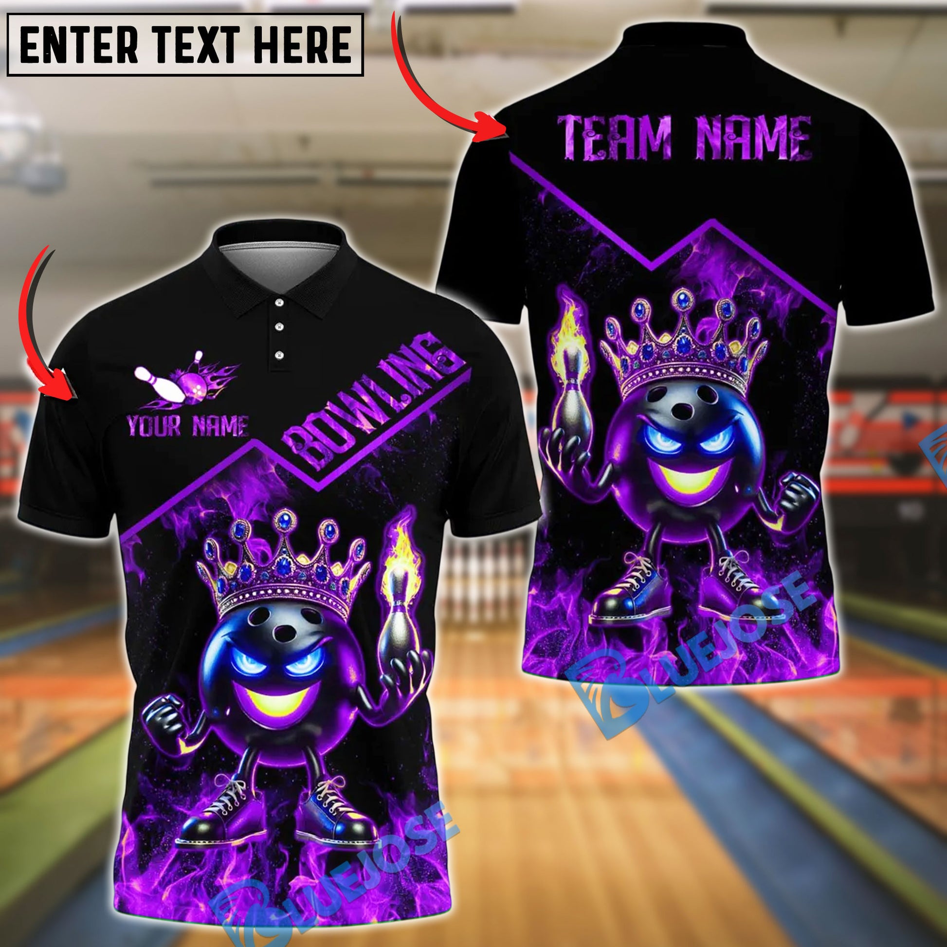 BlueJose Bowling And Pins Fire King Ball With Crown Customized Name 3D Shirt (4 Colors)
