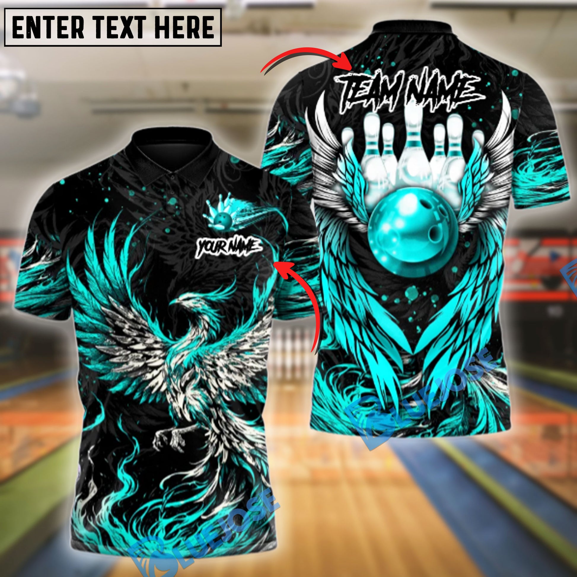 BlueJose Bowling And Pins Fire Phoenix Wings Customized Name, Team Name 3D Shirt (4 Colors)