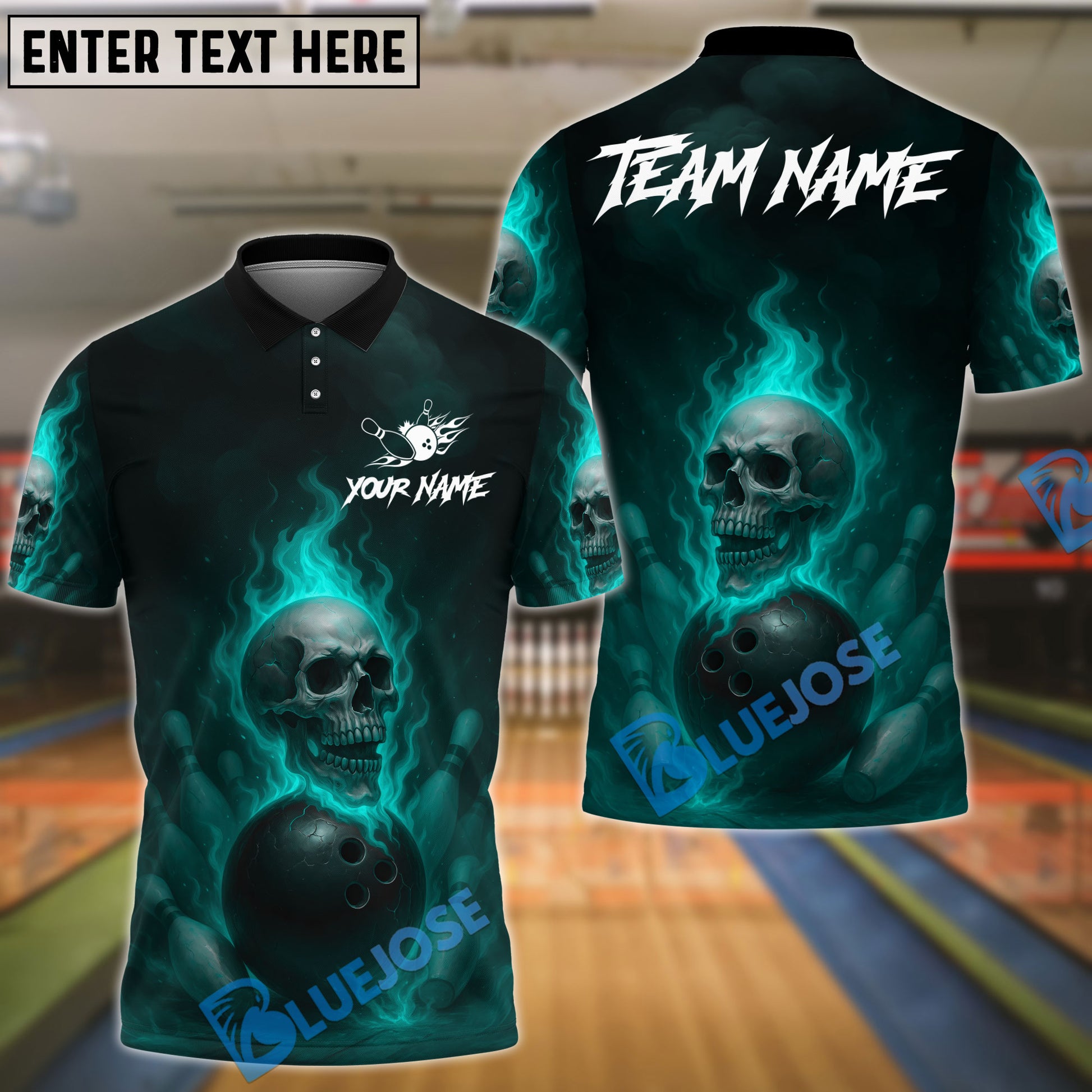 BlueJose Bowling And Pins Fire Skull Lane Streetwear Customized Name, Team Name 3D Shirt (4 Colors)