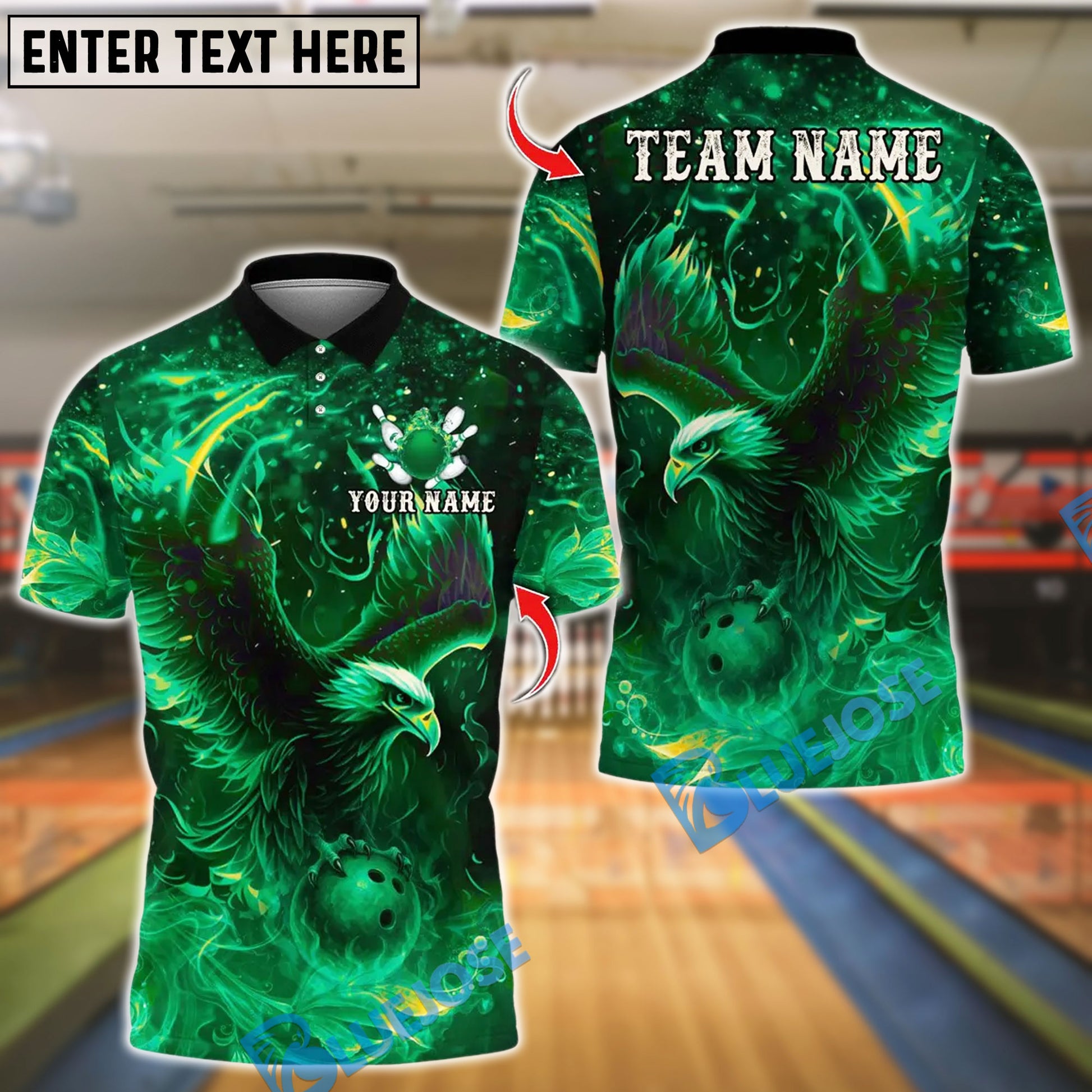 BlueJose Bowling And Pins Flame Eagle Design Customized Name, Team Name 3D Shirt (4 Colors)