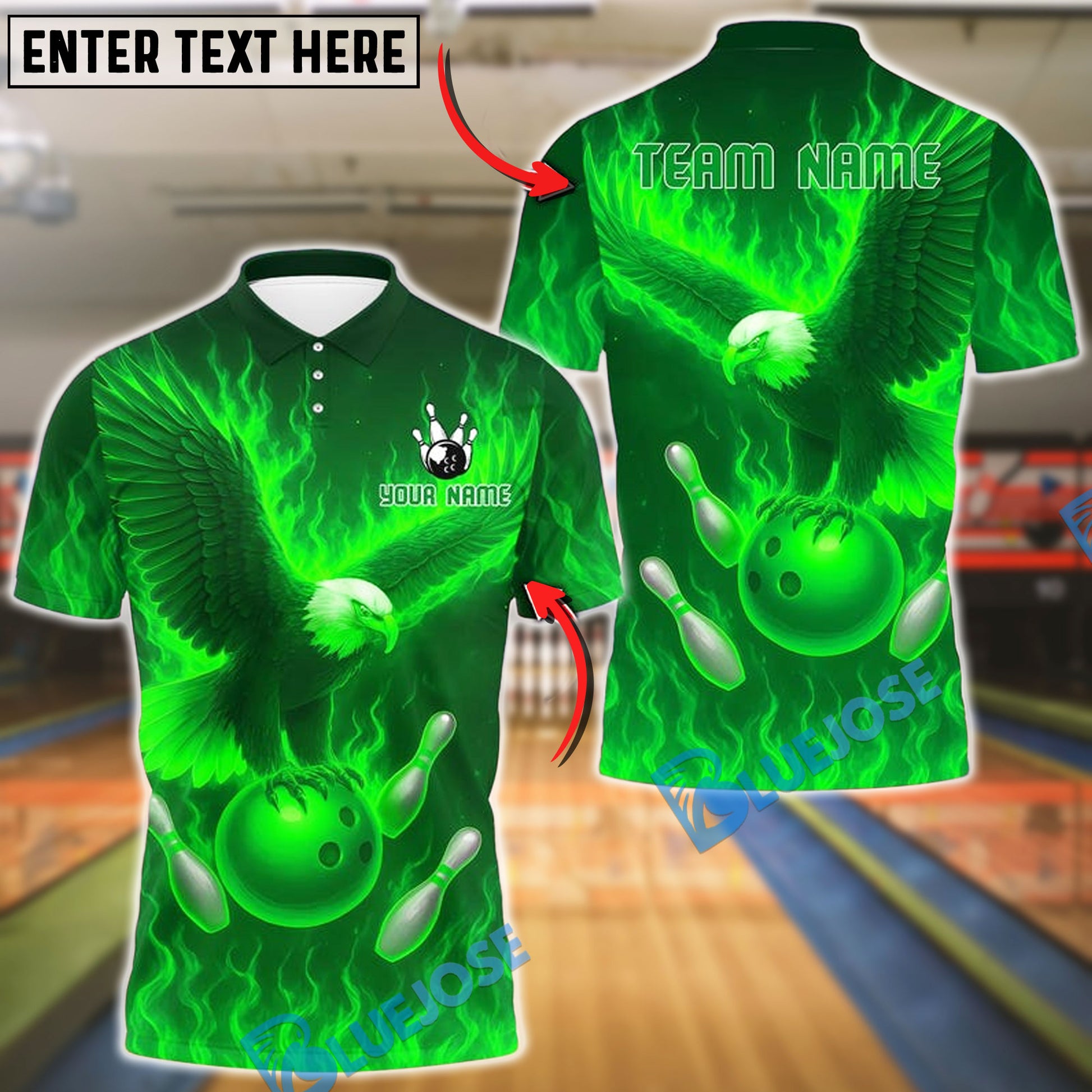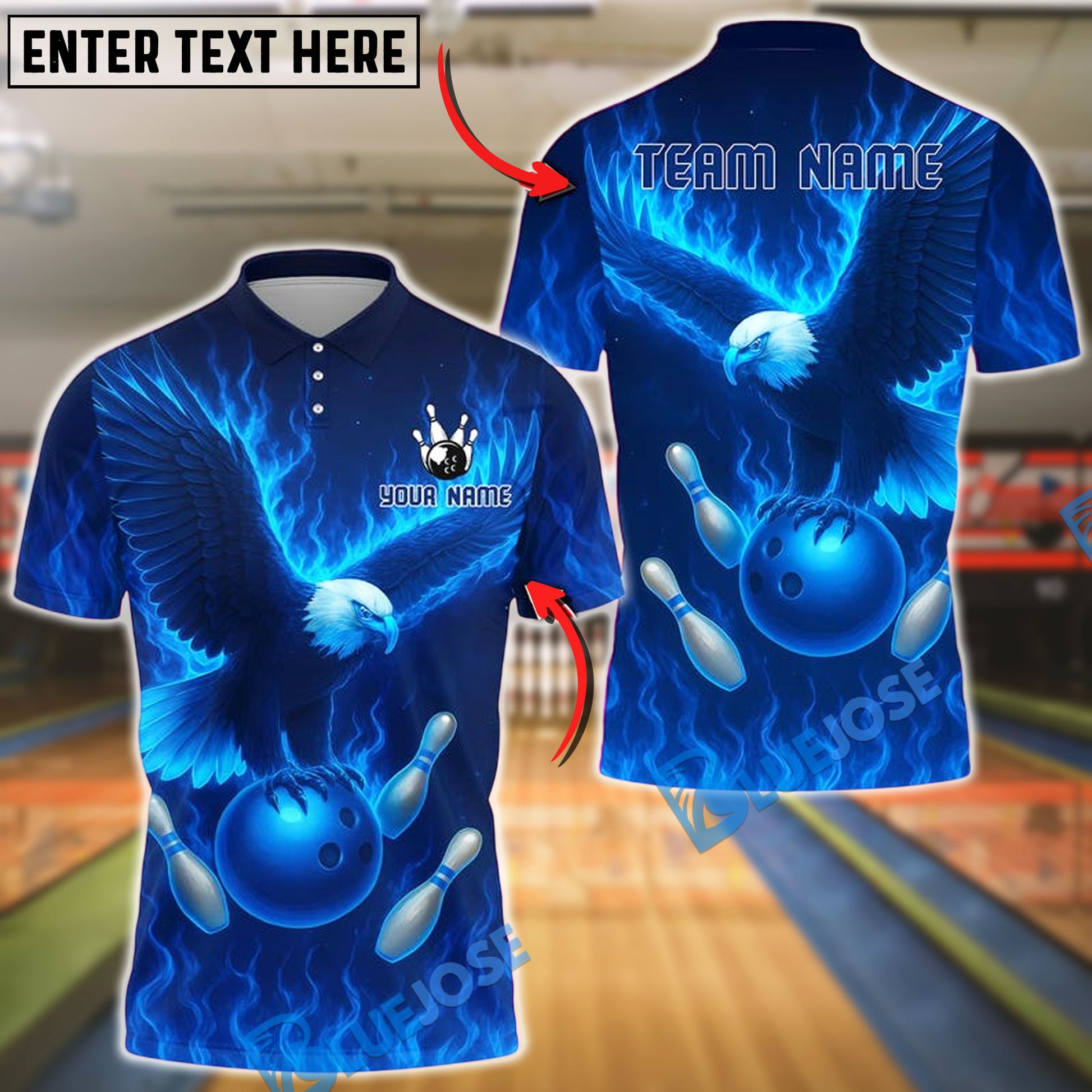 BlueJose Bowling And Pins Flame Eagle Design Customized Name, Team Name 3D Shirt (4 Colors)