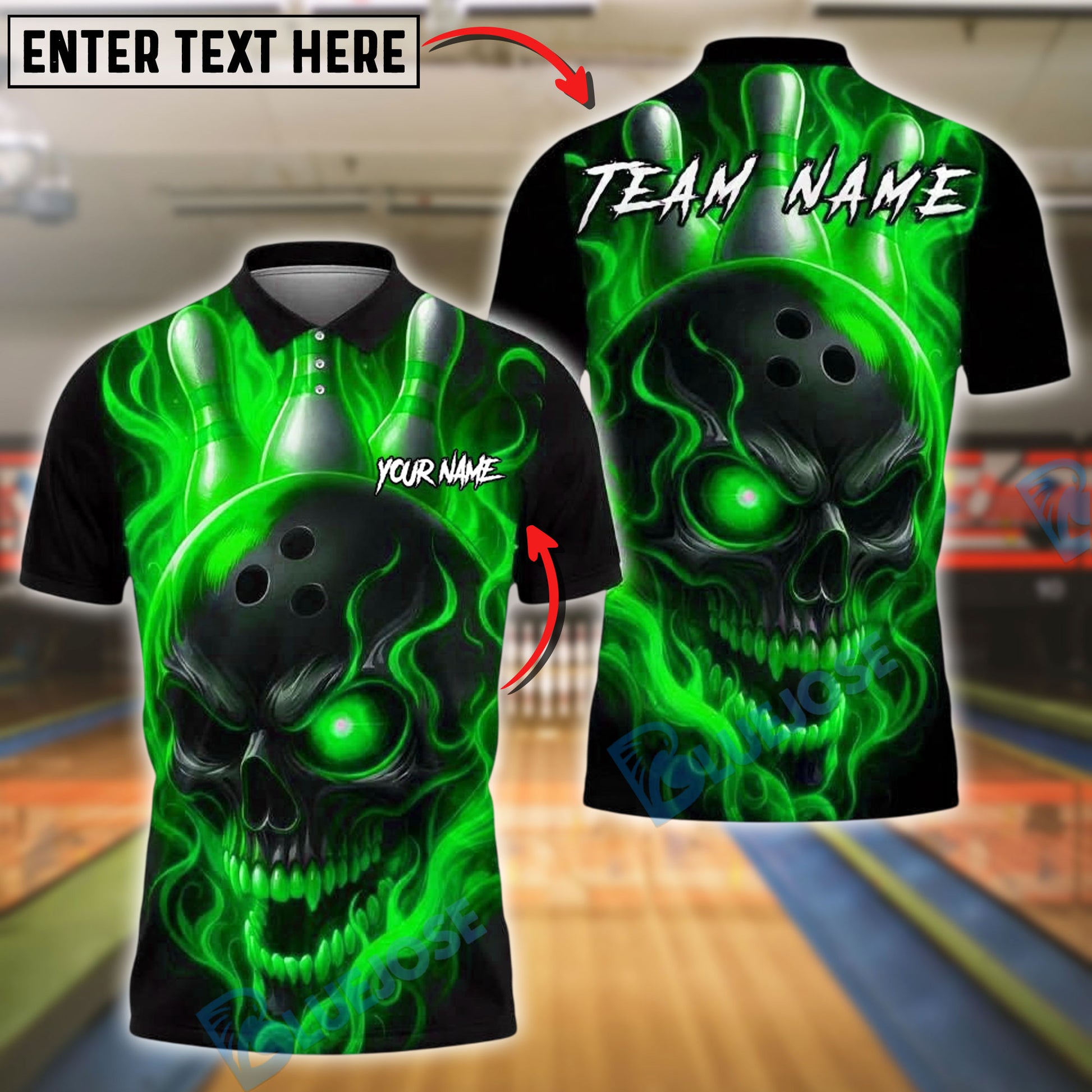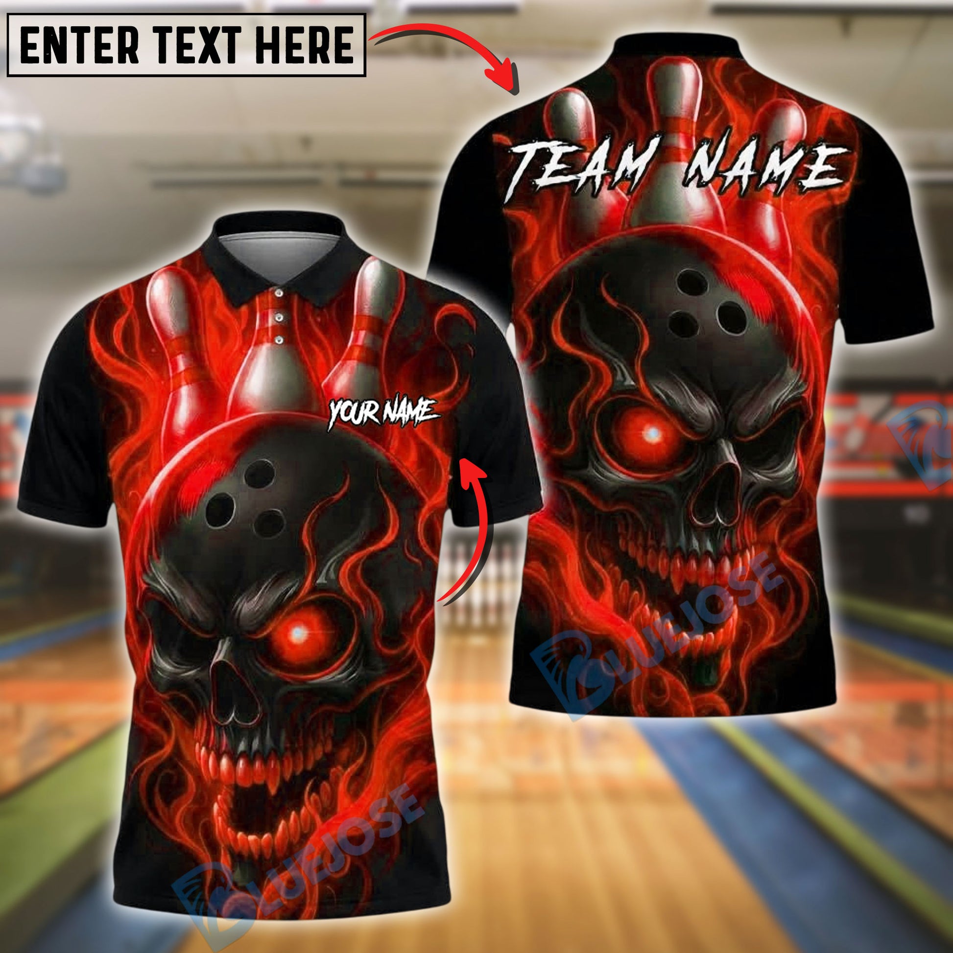 BlueJose Bowling And Pins Flame Skull Customized Name, Team Name 3D Shirt (4 Colors)