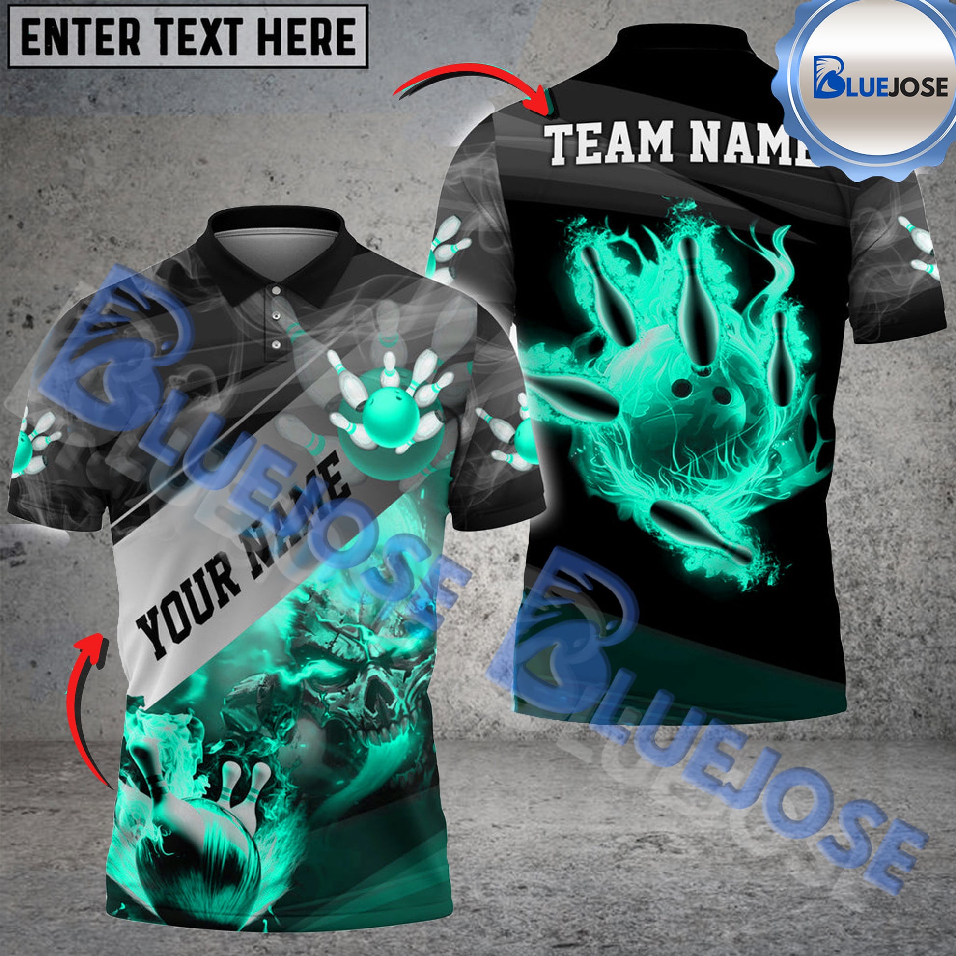BlueJose Bowling And Pins Flame Skull Strike Customized Name 3D Shirt (4 Colors)