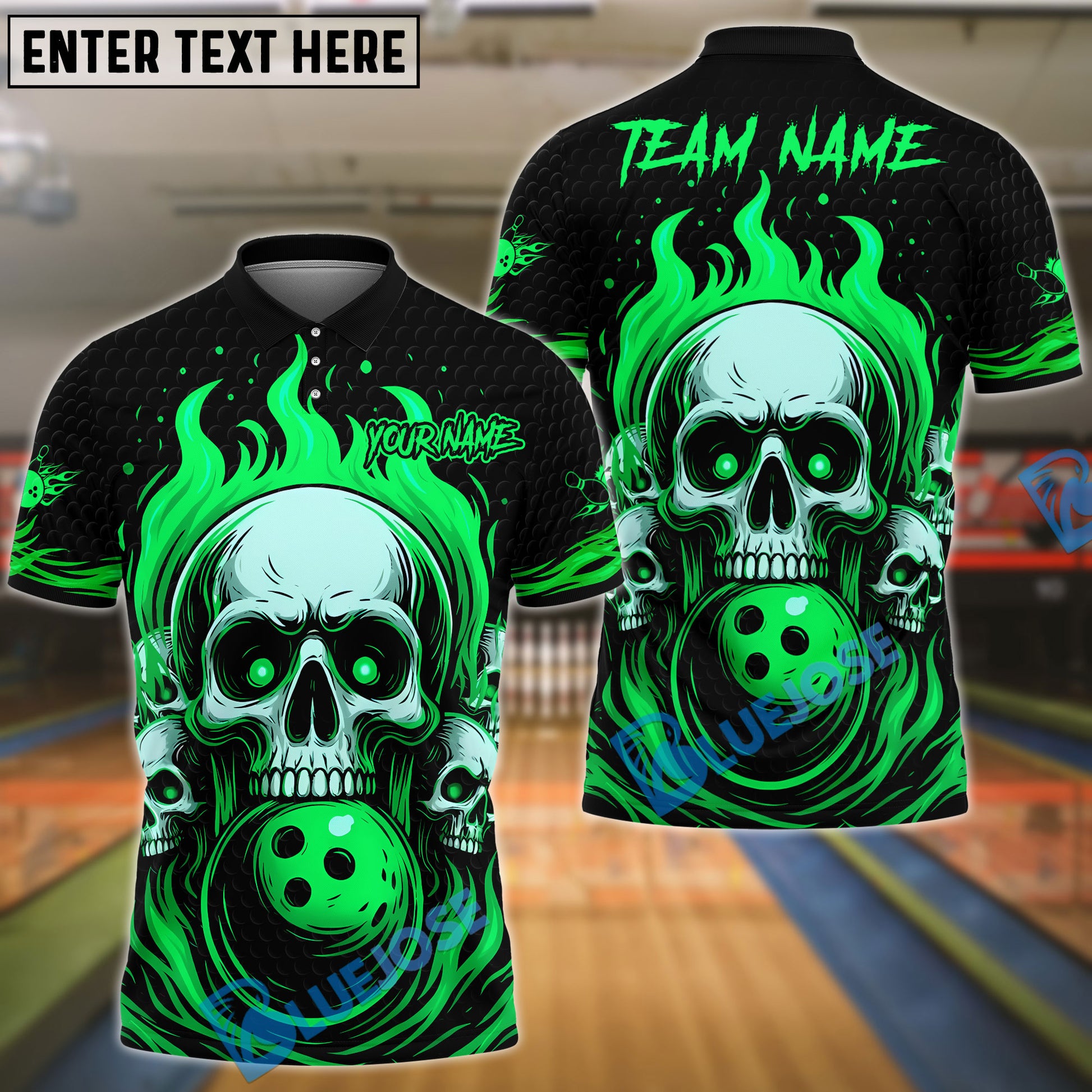 BlueJose Bowling And Pins Flame Skull Team Design 2 Customized Name, Team Name 3D Shirt (4 Colors)