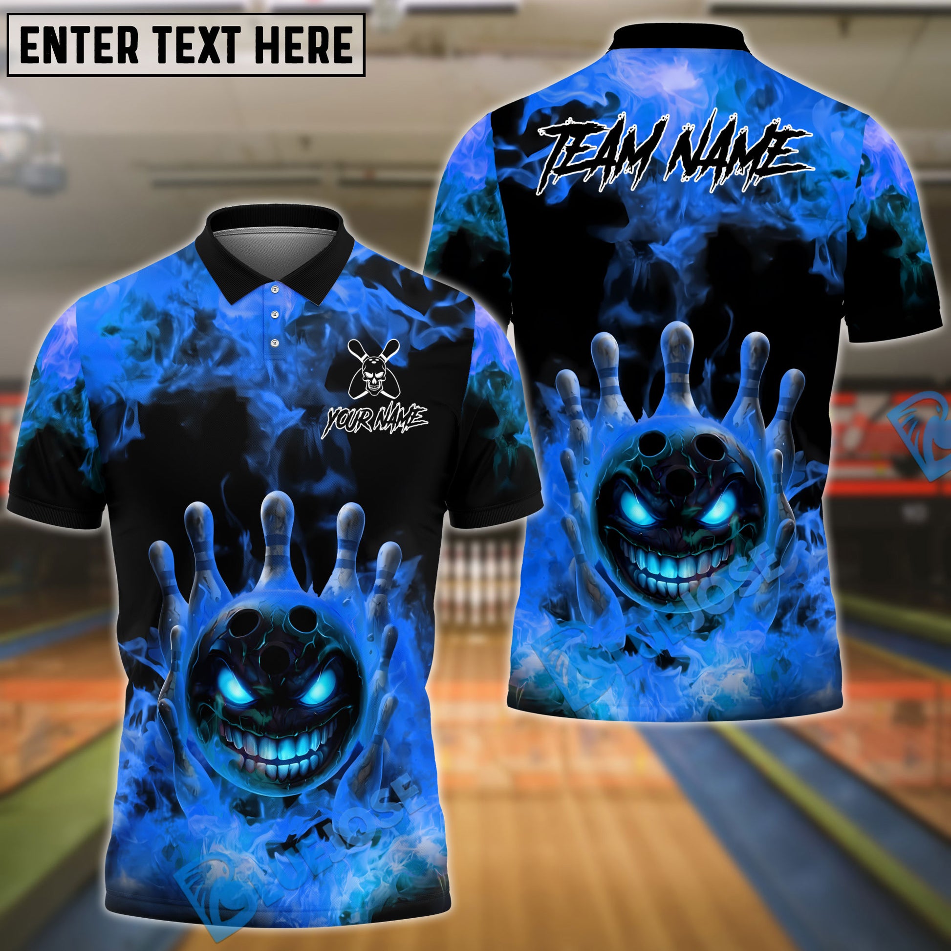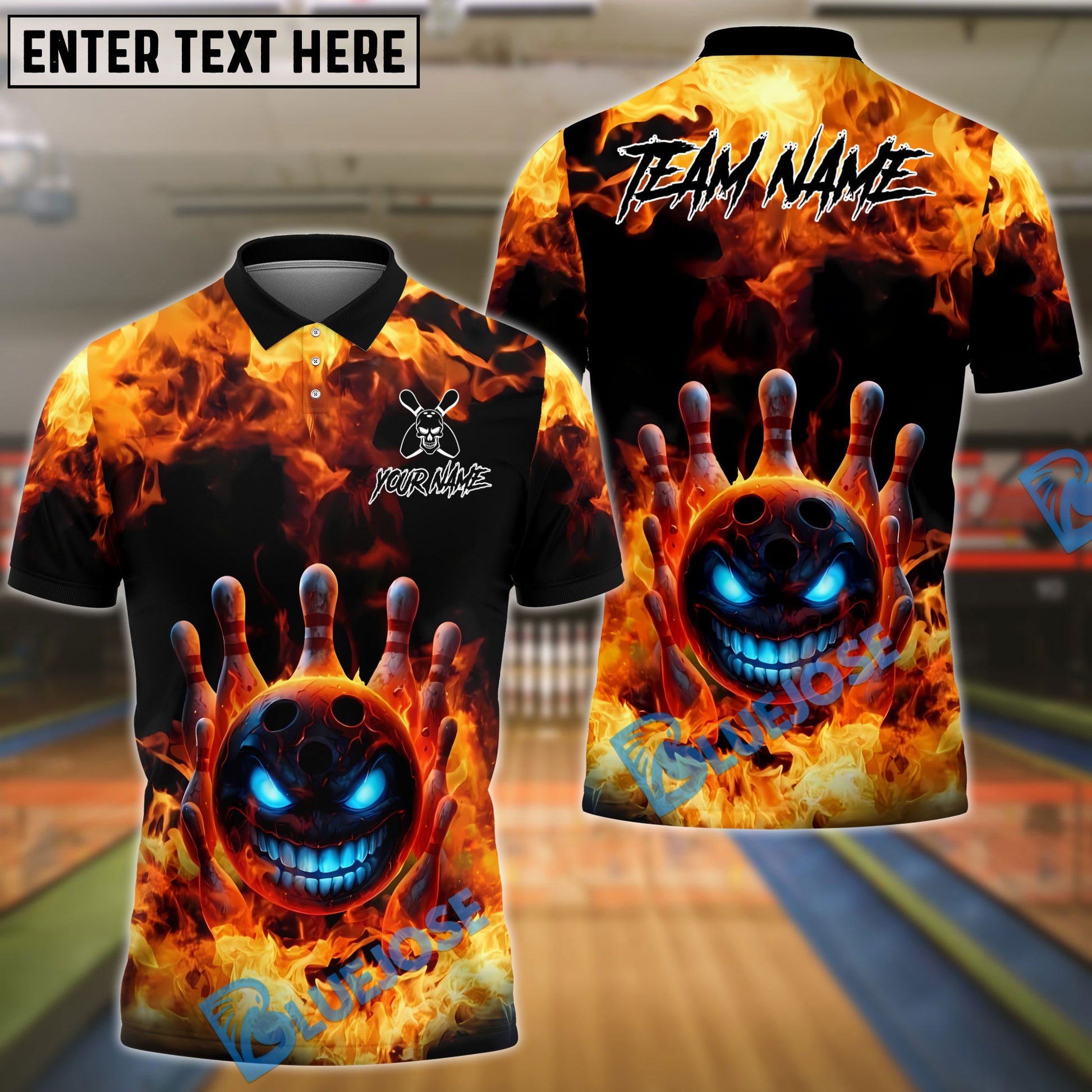 BlueJose Bowling And Pins Flaming Evil Ball Customized Name, Team Name 3D Shirt (4 Colors)