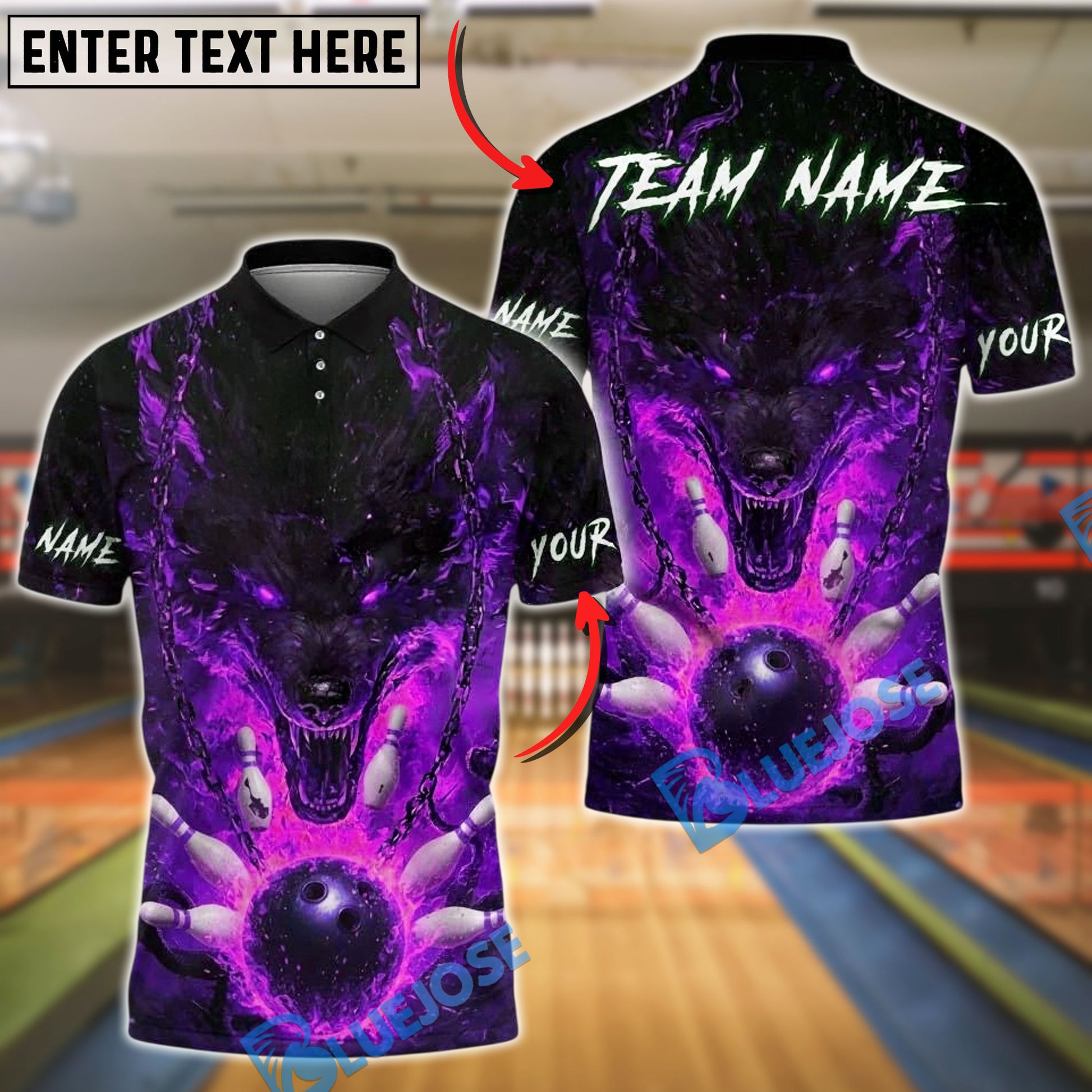 BlueJose Bowling And Pins Flaming Wolf Fire Ball Customized Name, Team Name 3D Shirt (4 Colors)