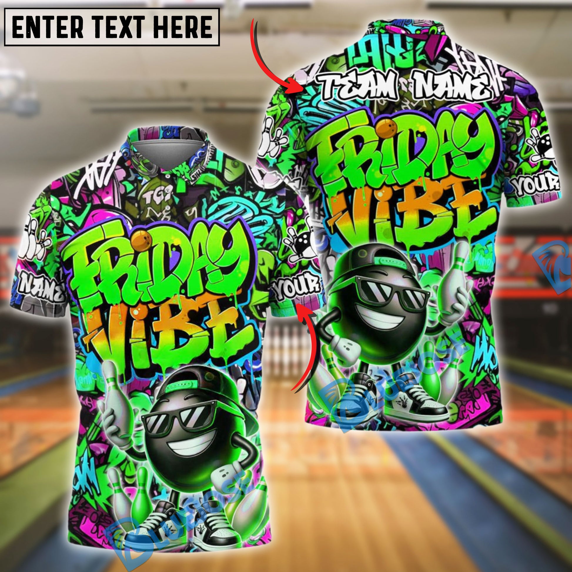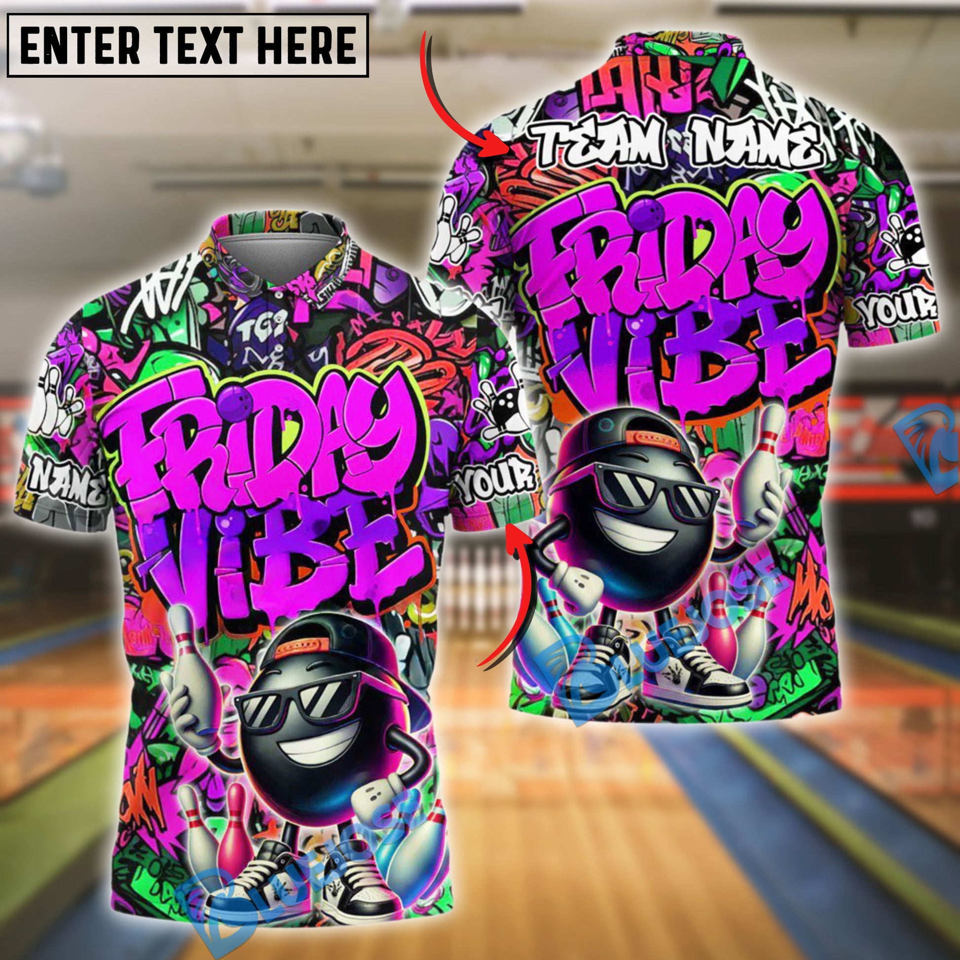 BlueJose Bowling And Pins Friday Vibe Graffiti Street Style Customized Name, Team Name 3D Shirt (4 Colors)