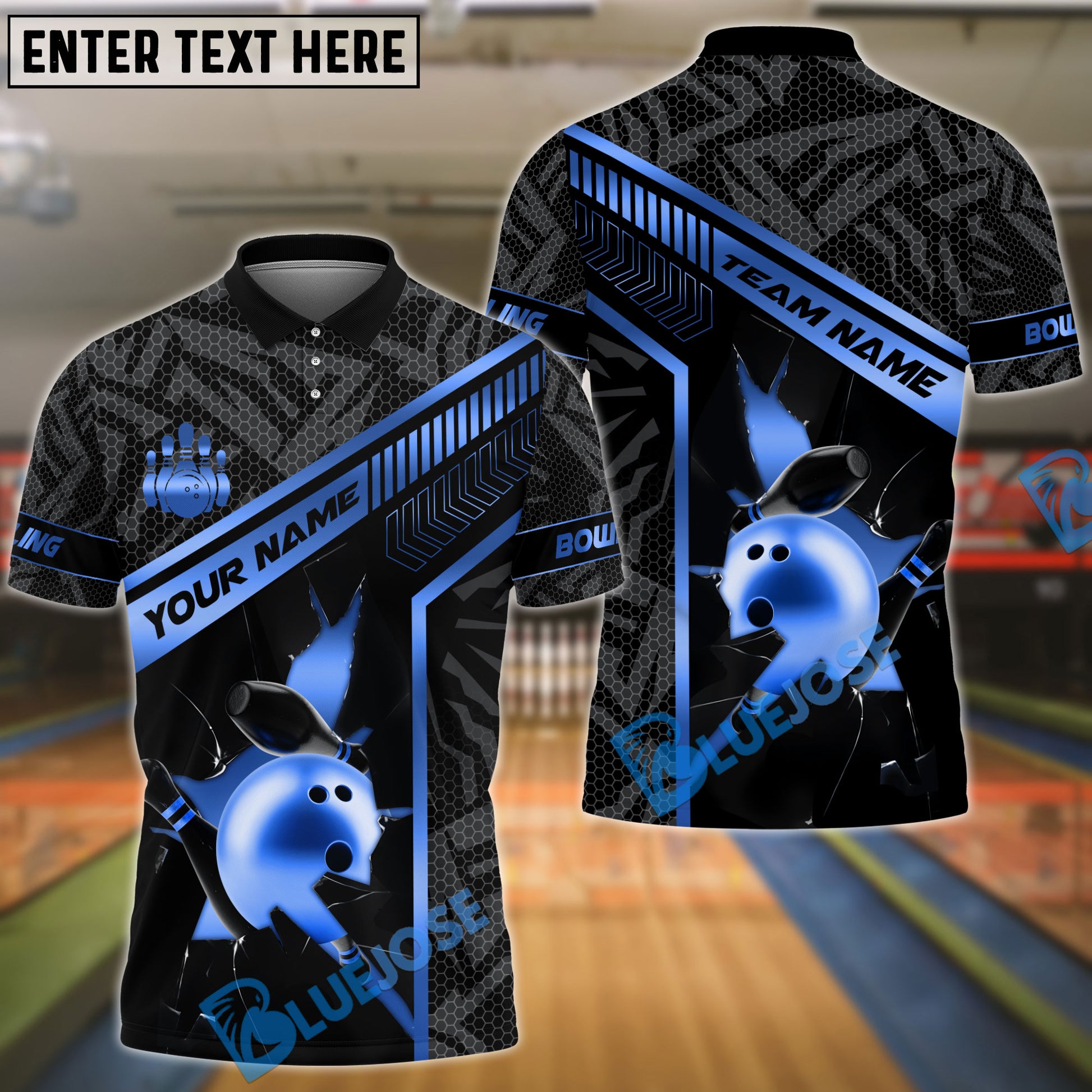 BlueJose Bowling And Pins Gold Strike Line Design Customized Name, Team Name 3D Shirt (4 Colors)