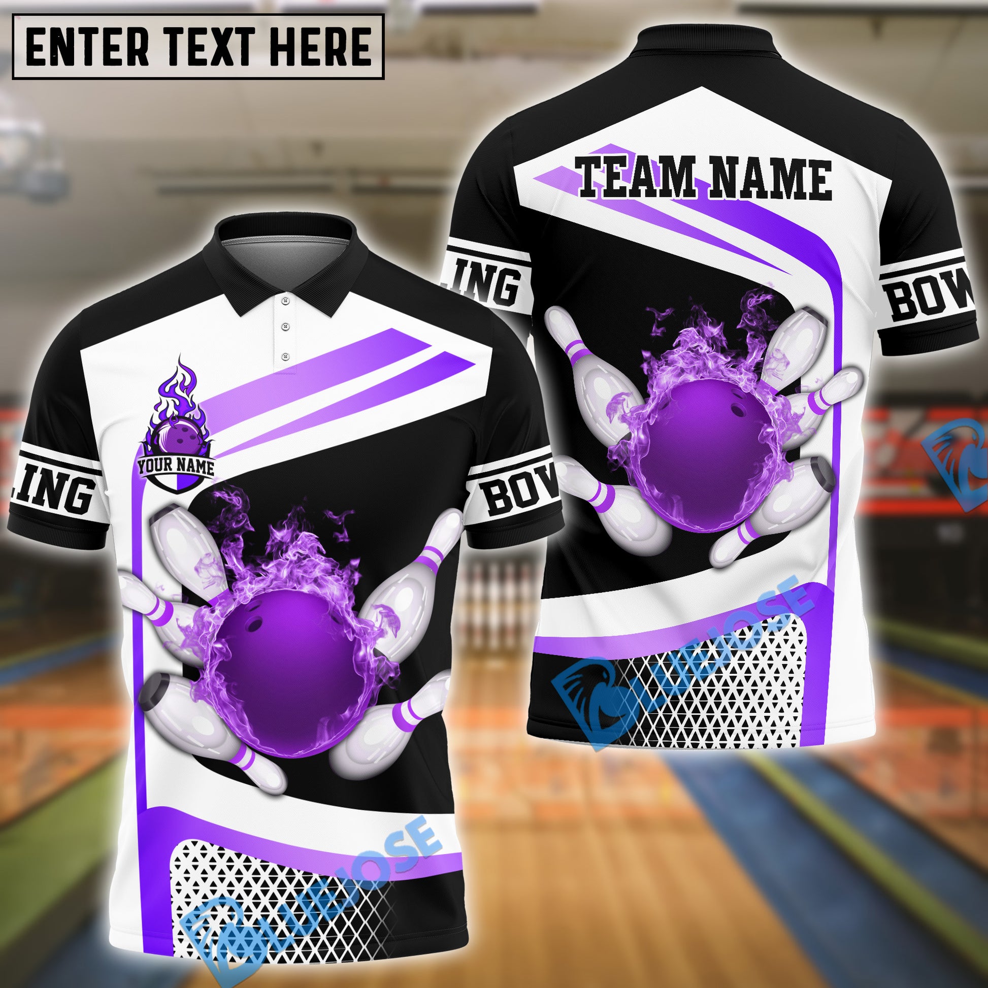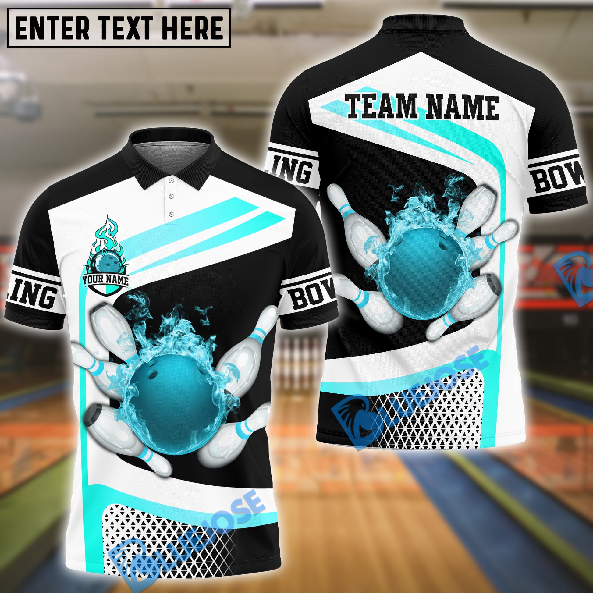 BlueJose Bowling And Pins Golden Flaming Strike Customized Name, Team Name 3D Shirt (4 Colors)