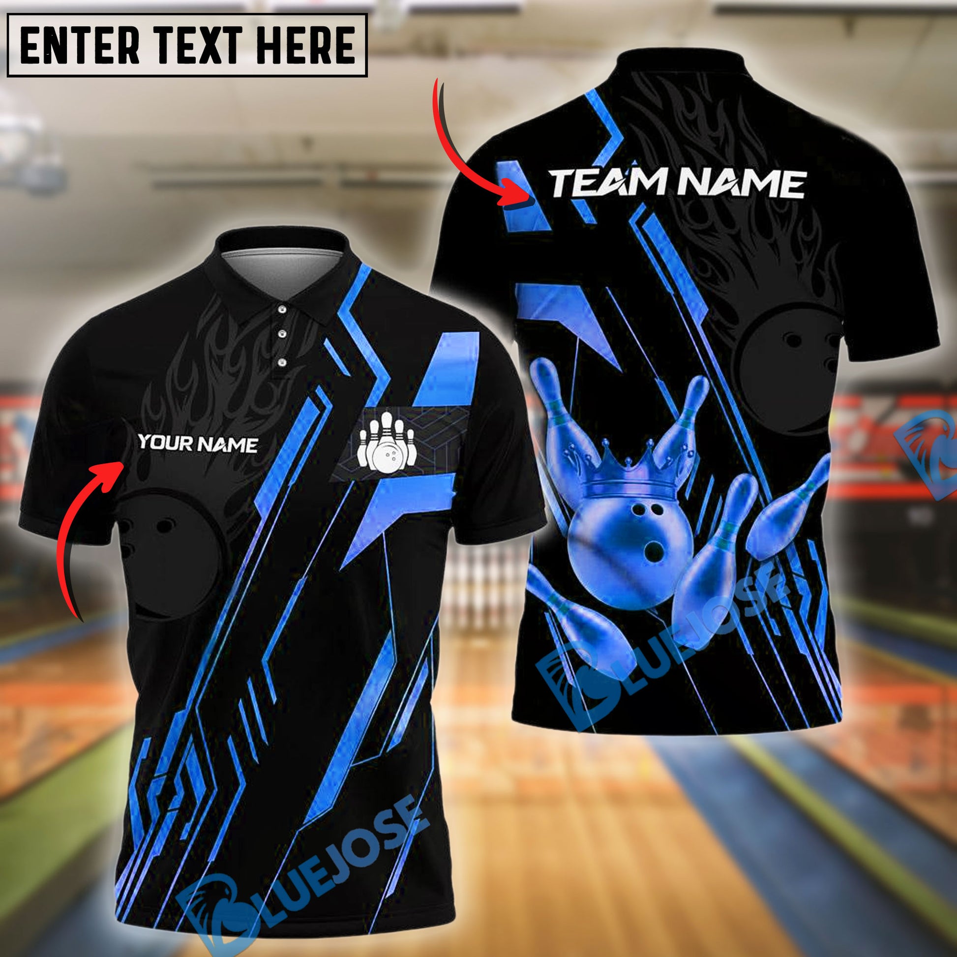 BlueJose Bowling And Pins Golden King Customized Name, Team Name 3D Shirt (4 Colors)
