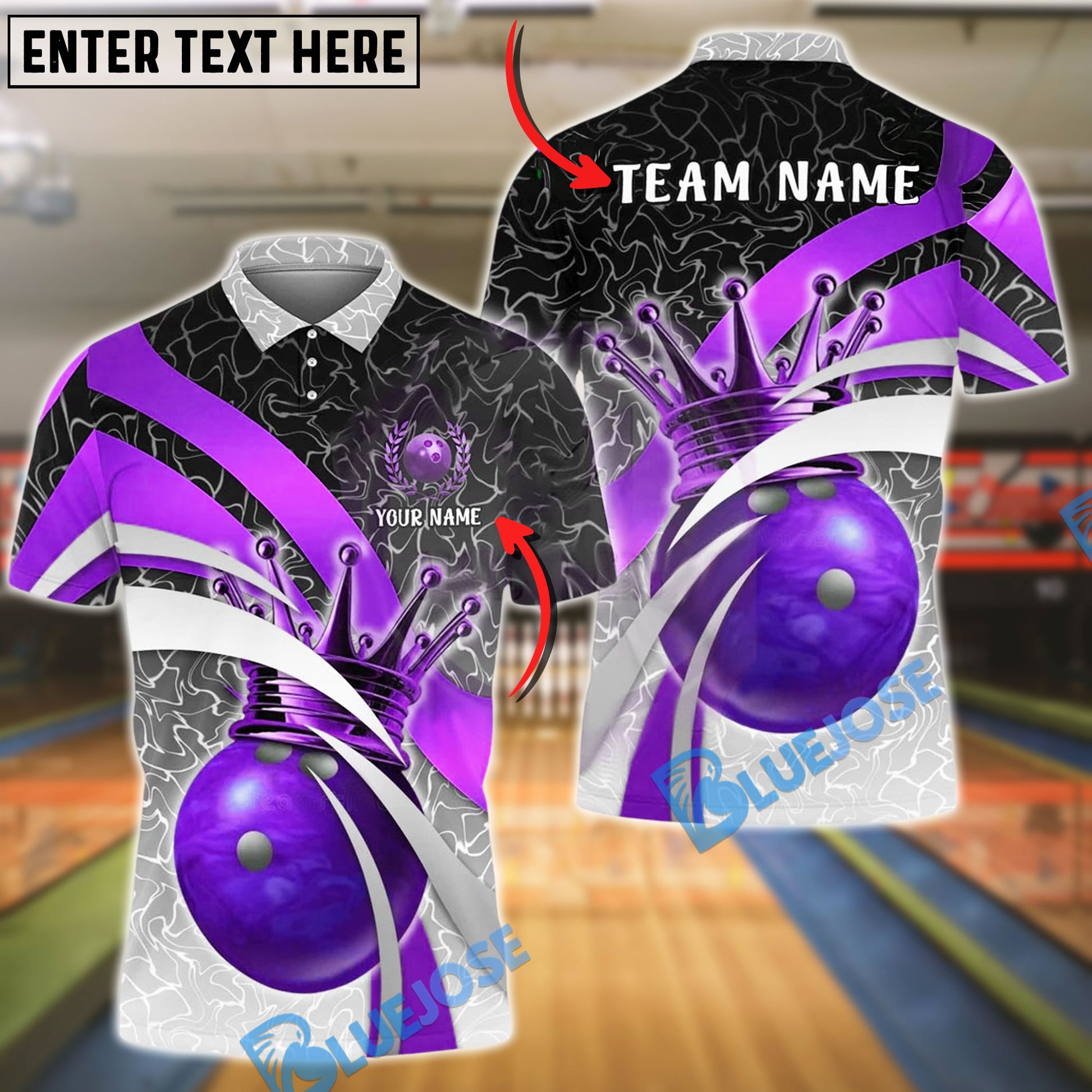 BlueJose Bowling And Pins Golden King Customized Name, Team Name 3D Shirt (4 Colors)