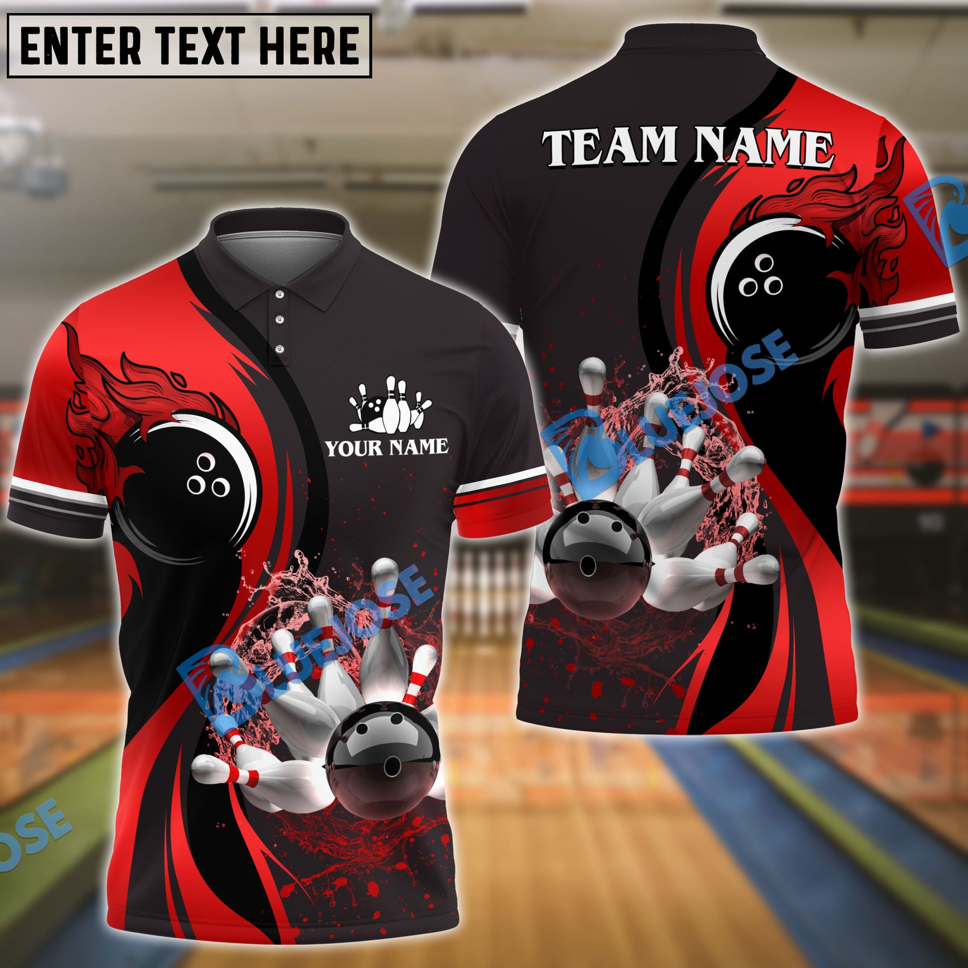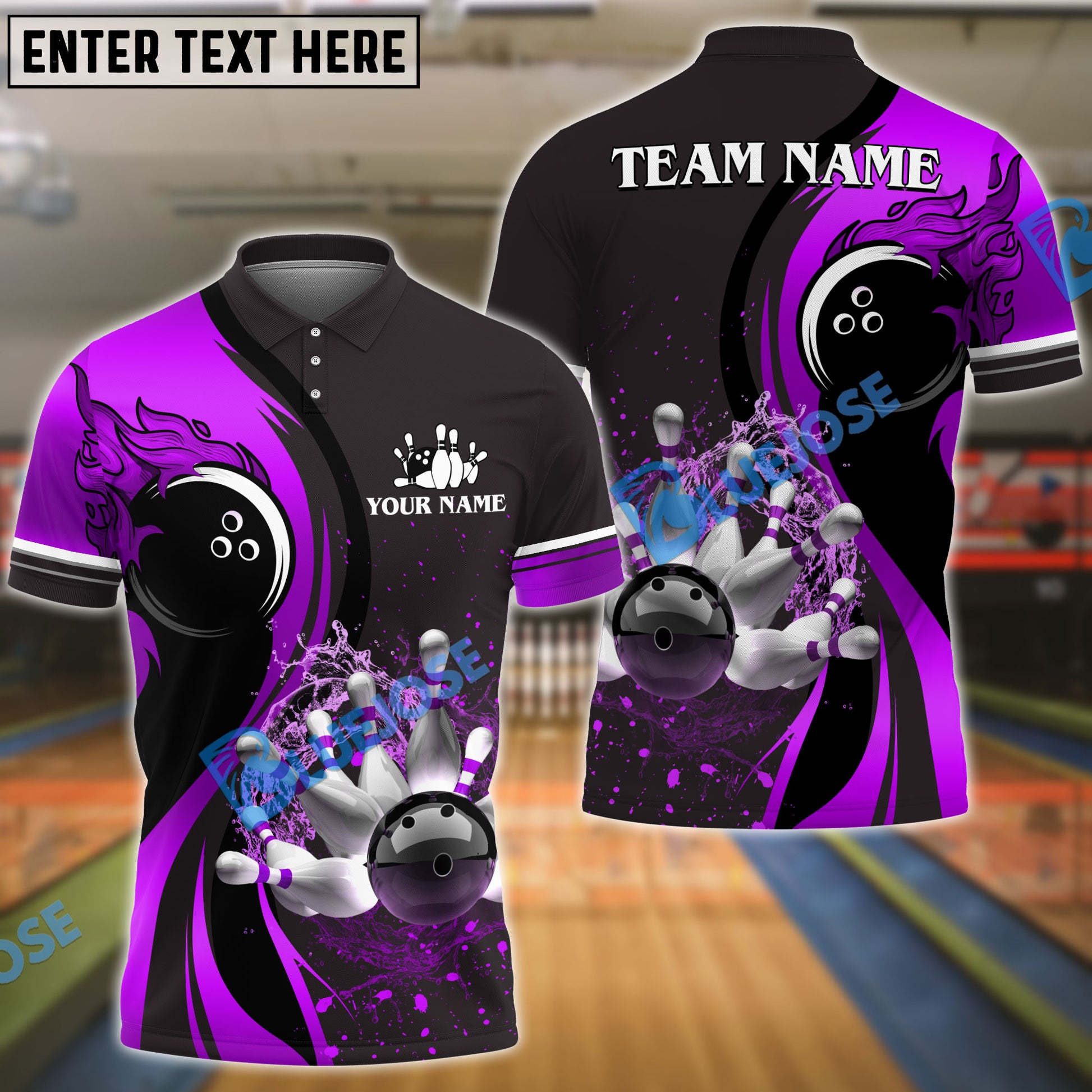 BlueJose Bowling And Pins Golden Splash Customized Name, Team Name 3D Shirt (4 Colors)