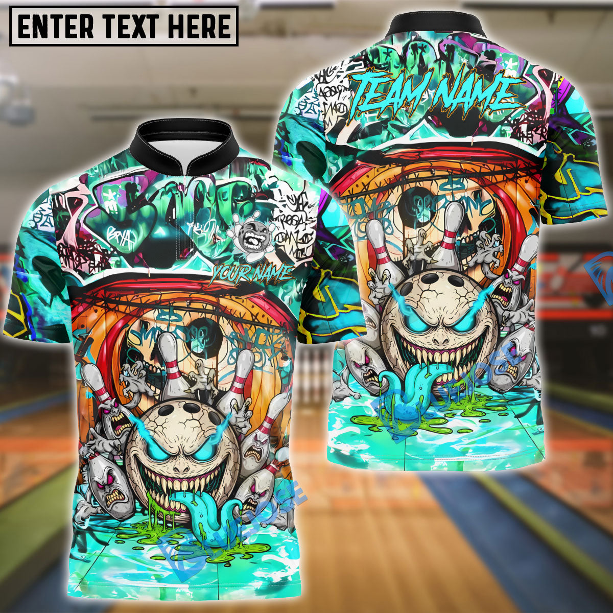 BlueJose Bowling And Pins Graffiti Monster Urban Style Customized Name, Team Name 3D Shirt (4 Colors)
