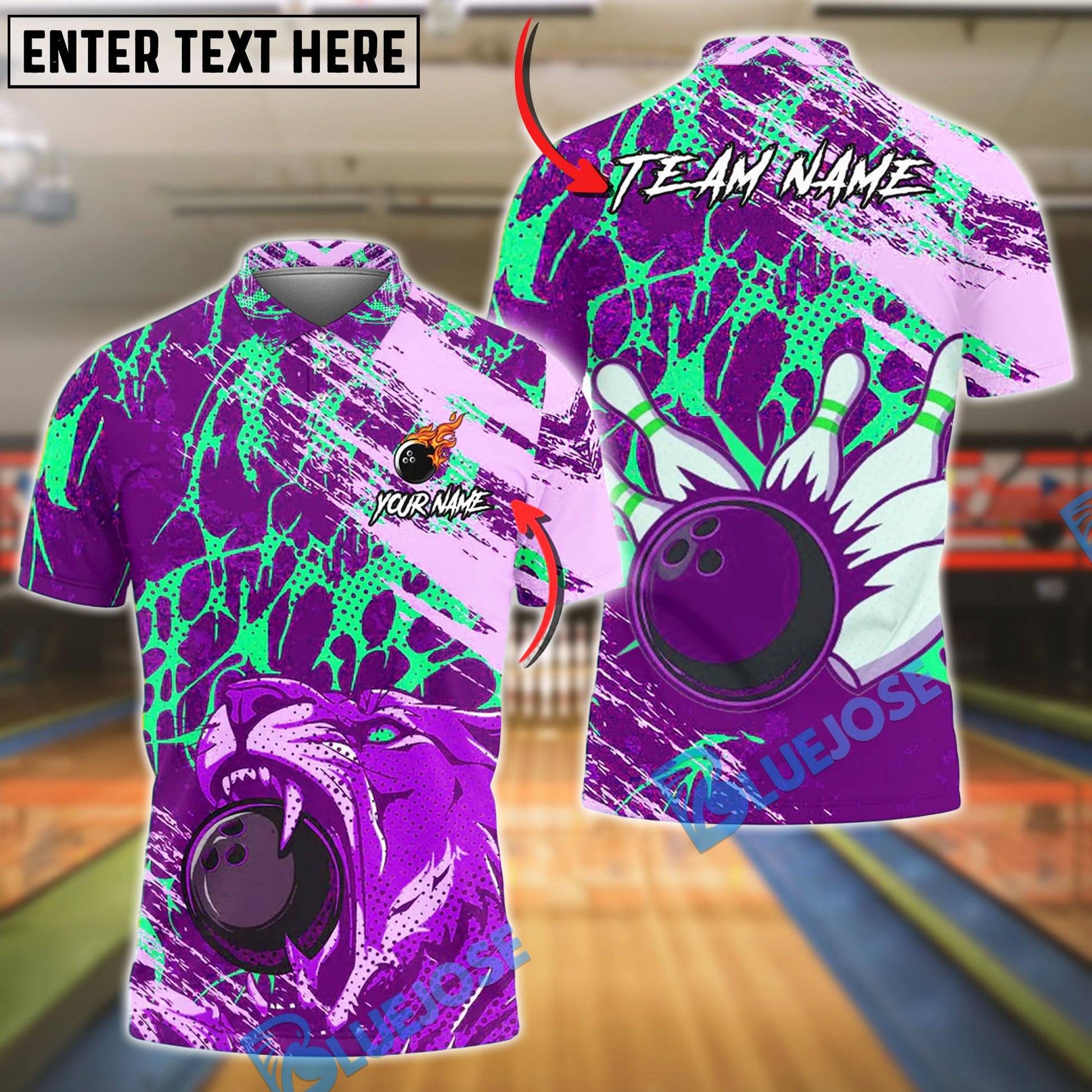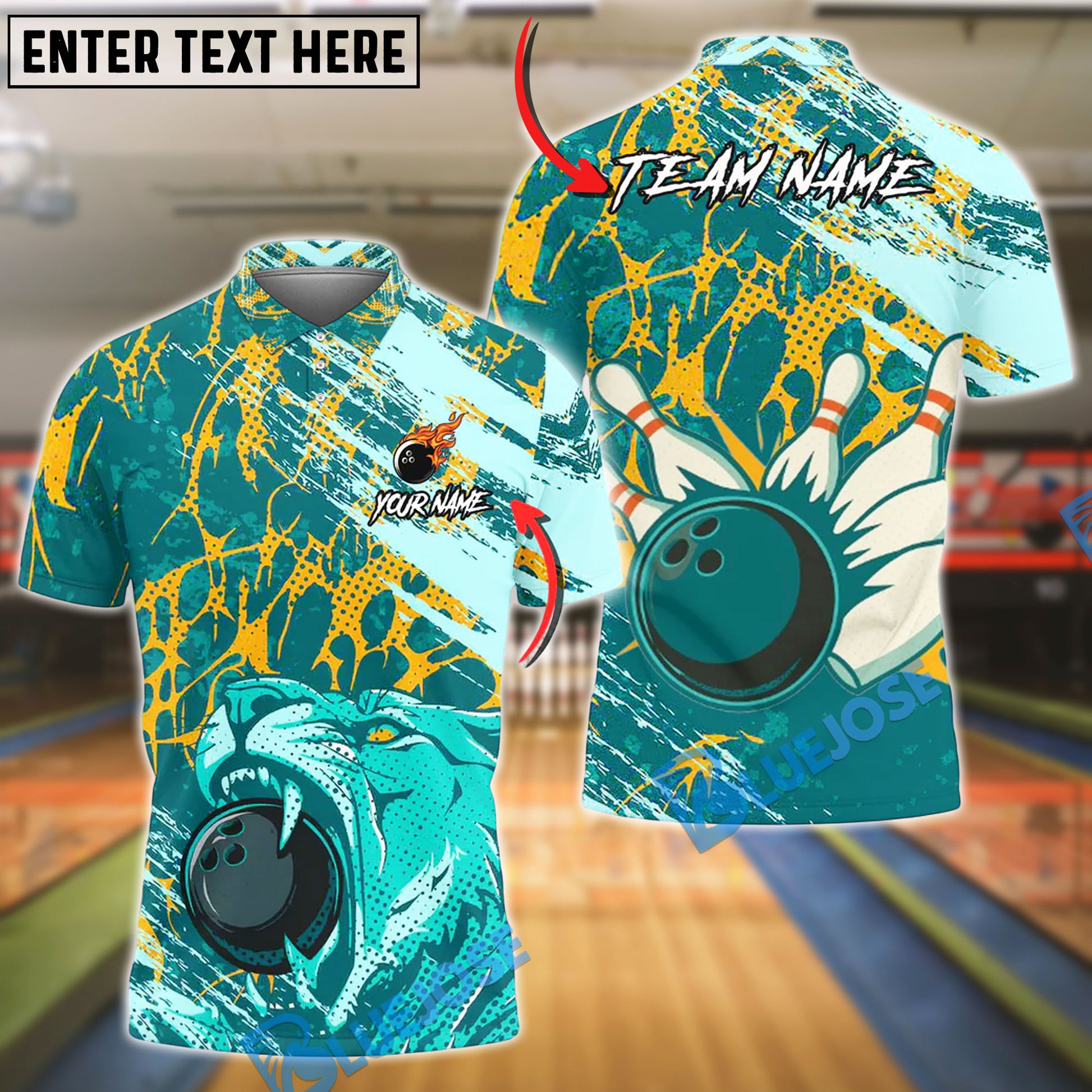 BlueJose Bowling And Pins Grunge Splash Tiger Vector Art Customized Name, Team Name 3D Shirt (4 Colors)