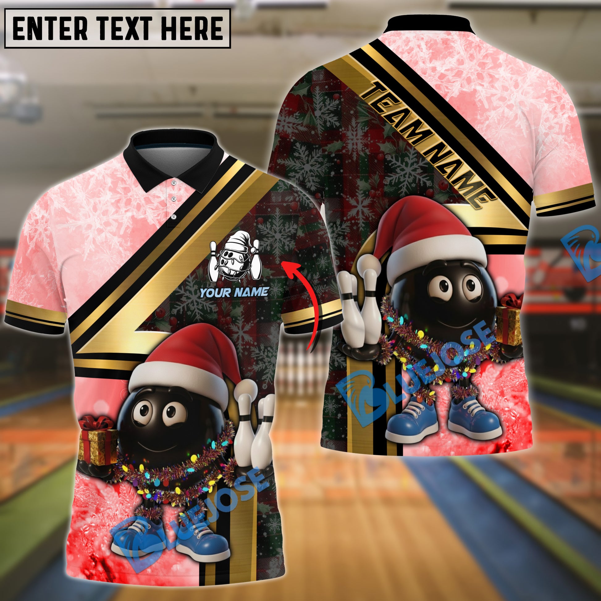BlueJose Bowling And Pins Happy Ball Caro Snowflake Pattern Customized Name, Team Name 3D Shirt (4 Colors)
