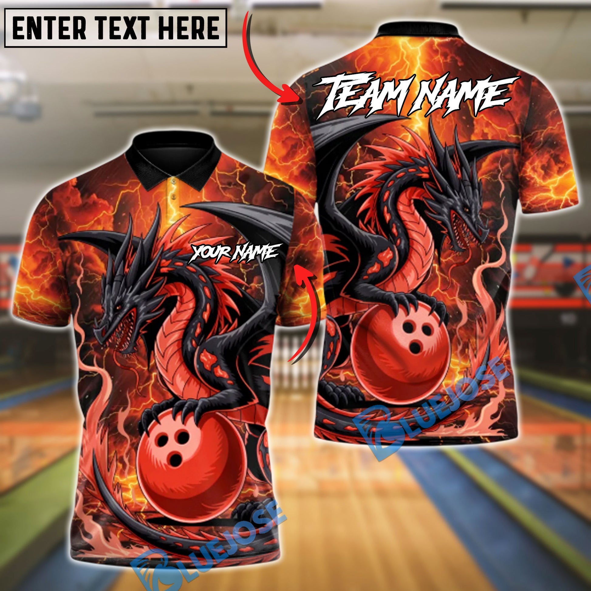 BlueJose Bowling And Pins Hellfire Dragon Customized Name, Team Name 3D Shirt (4 Colors)