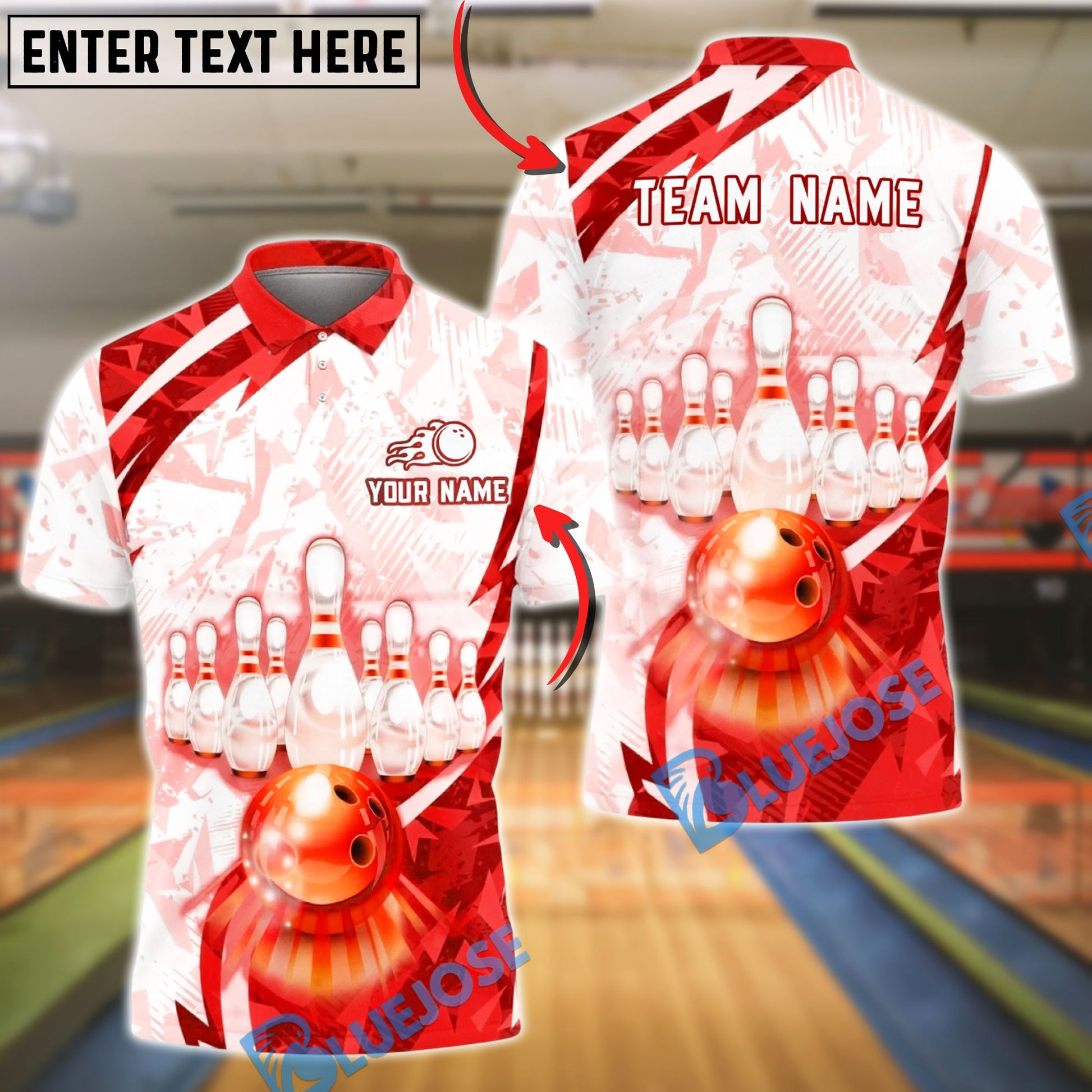 BlueJose Bowling And Pins Ice Glow Graphic Customized Name, Team Name 3D Shirt (4 Colors)